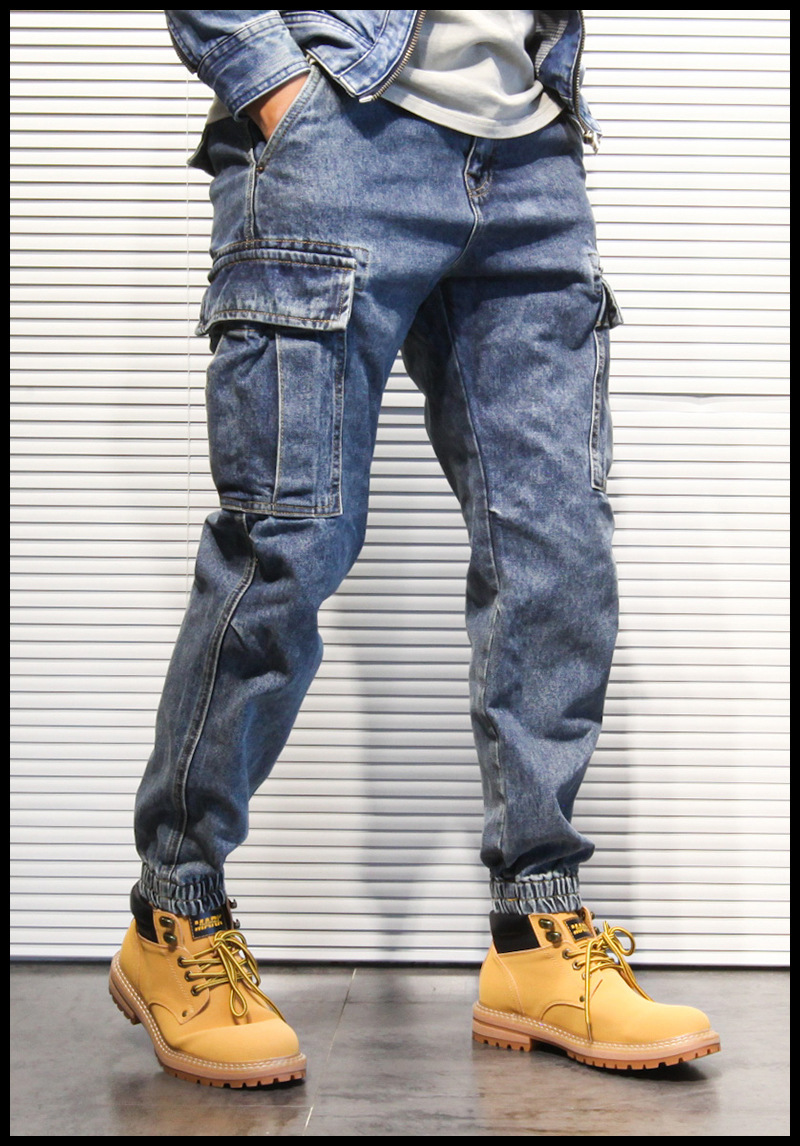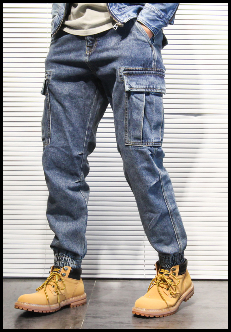 미국 복고풍 다리 툴링 바지 남자의 봄과 가을 느슨한 따뜻한 남자의 데님 캐주얼 긴 바지 남성용스토어 가기