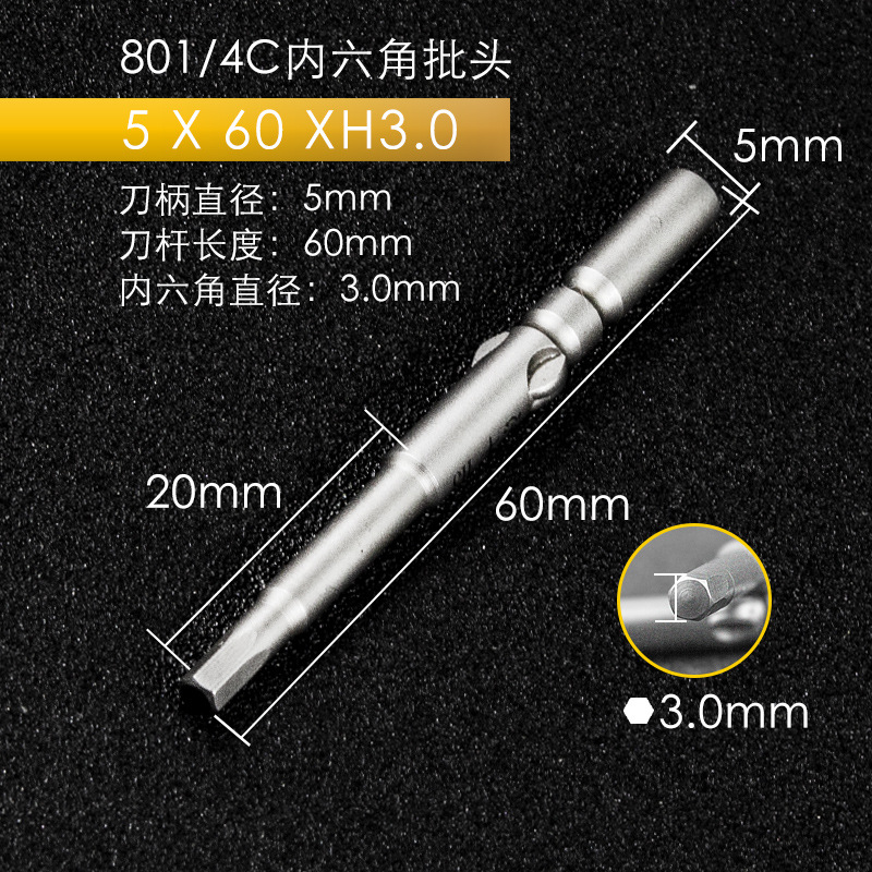 Zhifeng 5MM 육각형 소켓 헤드 801 전기 스크류 드라이버 드라이버 헤드 전기 배치 노즐 육각형 소켓 라운드 핸들 S2 스틸