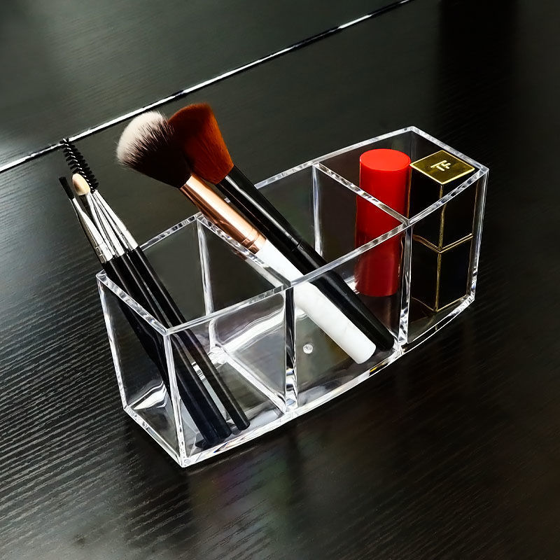 투명한 화장품 브러시 보관 카트리지 눈썹 펜 빗 배열 상자 3 칸 브러시 카트리지 데스크탑 저장 상자 펜 드릴스토어 가기