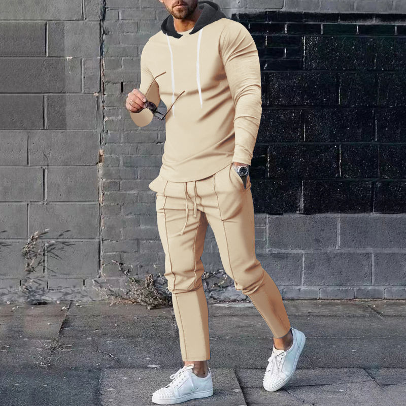 크로스 보더 레저 스포츠 세트 남자의 2023 봄과 가을 새로운 패션 느슨한 후드 스웨터 슬림 투피스 남성 세트