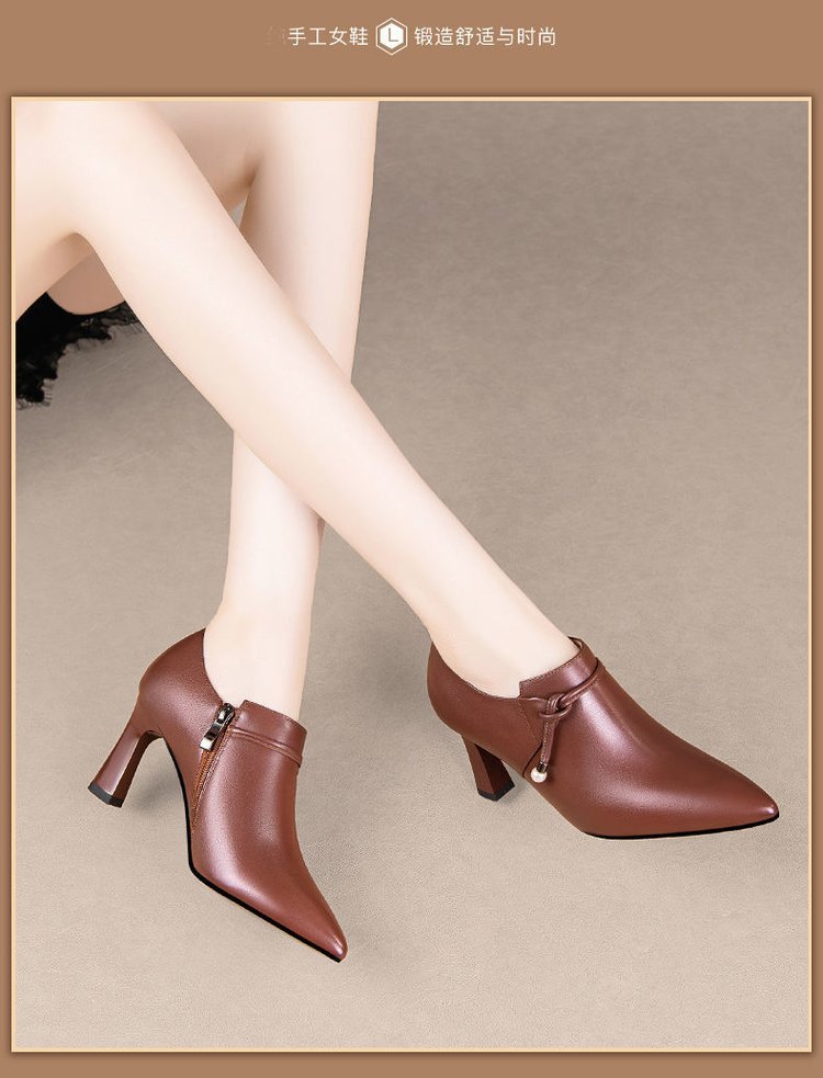 뾰족한 지퍼 하이힐 깊은 입 스틸레토 힐 패션 신발 진주 복고풍 여성 신발 봄과 가을 작은 가죽 신발스토어 가기