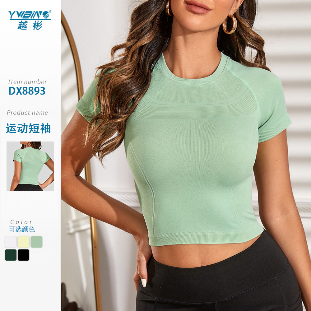 요가 옷 여성 피트니스 티셔츠 최고 섹시한 빠른 건조 통기성 체육관 스포츠 아침 운동 달리기 둥근 목 짧은 소매스토어 가기