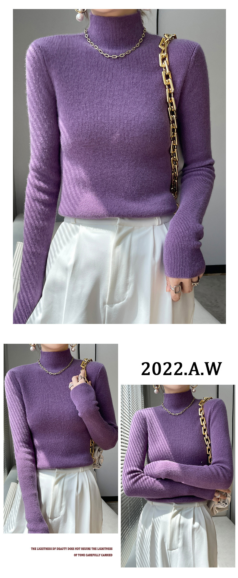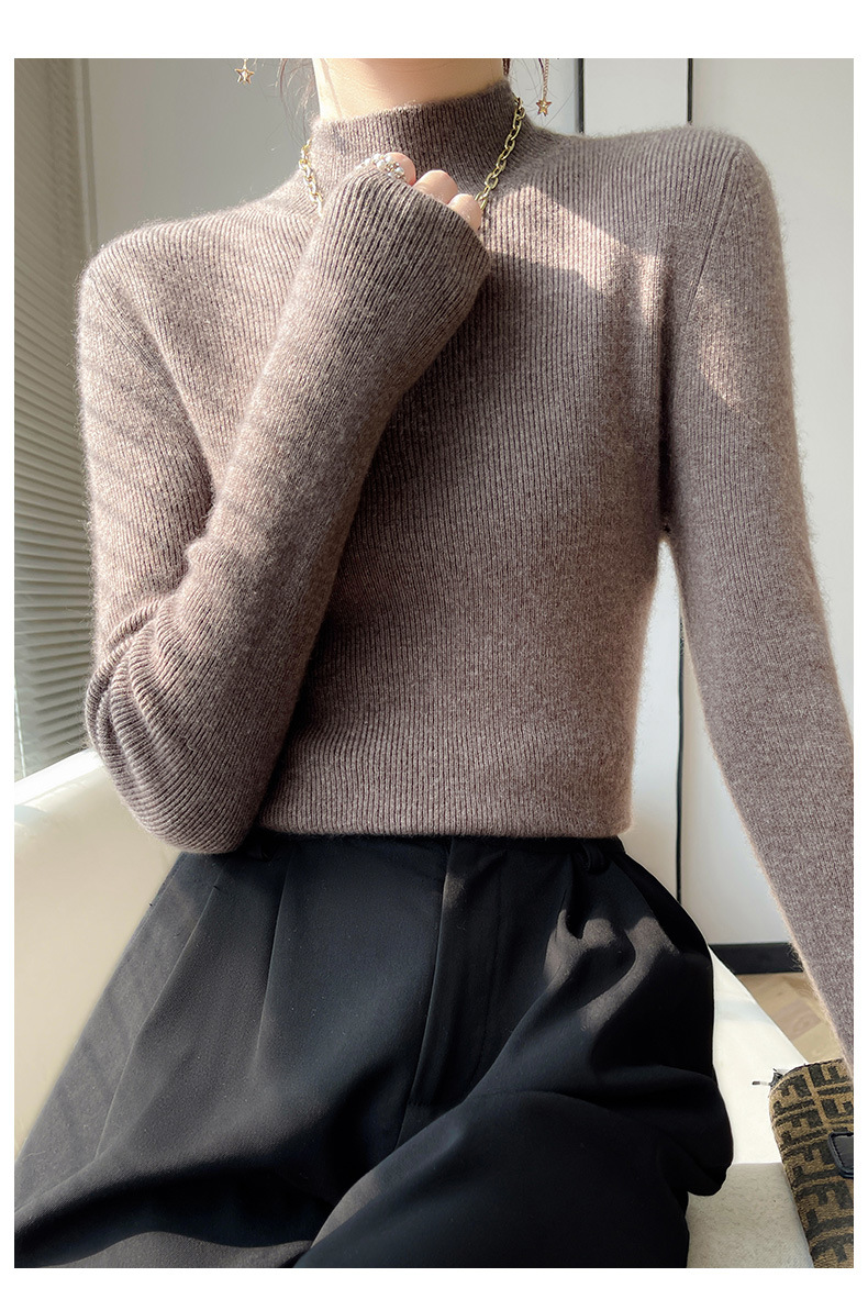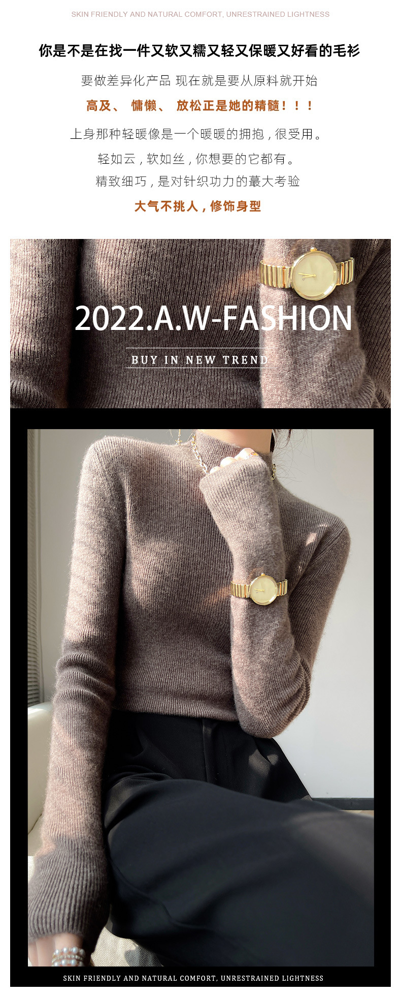 여성 스웨터 가을과 겨울 새로운 긴 소매 내복 슬림 핏 슬리밍 단색 올 매치 타이트 니트 하프 터틀넥 바닥 셔츠스토어 가기