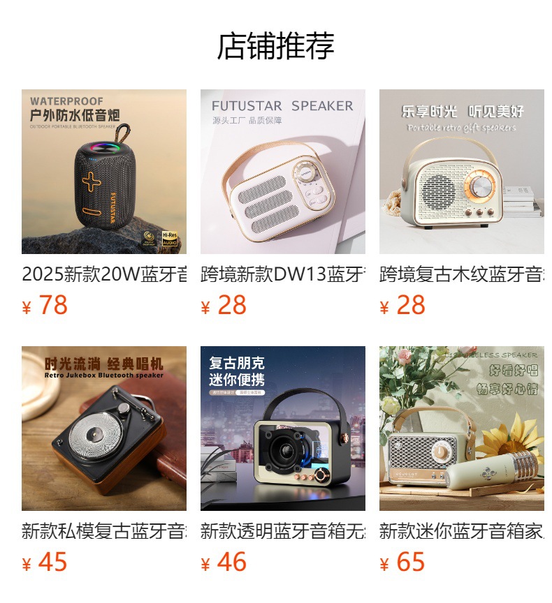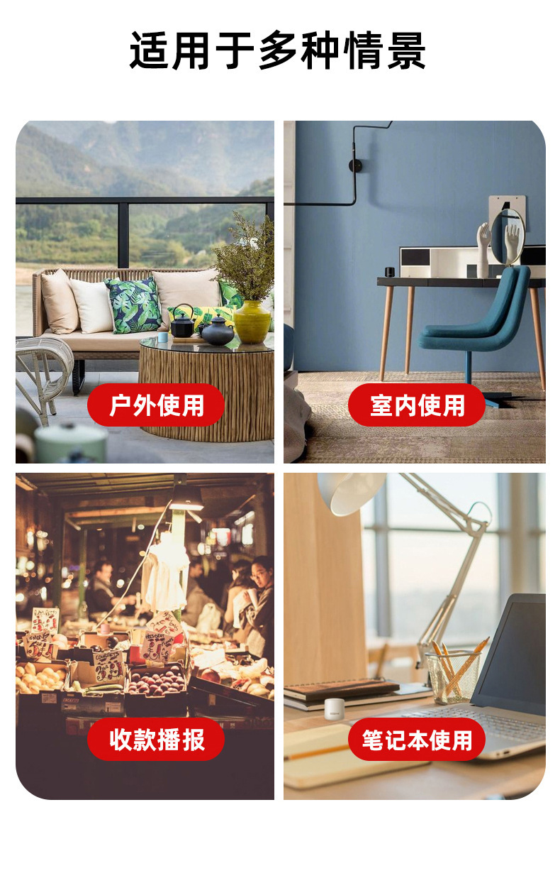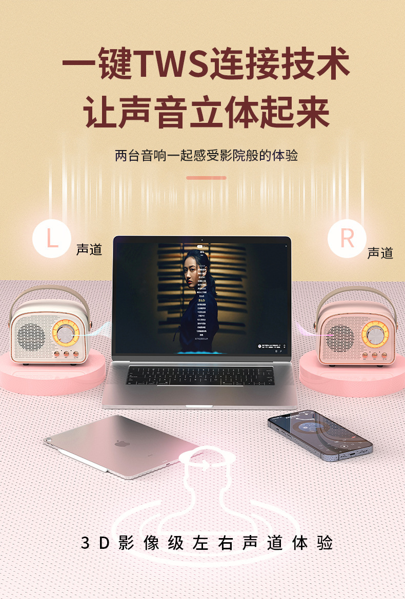 功能:蓝牙播放,TF卡播放 U盘播放 TWS互联 FM收音、免提通话