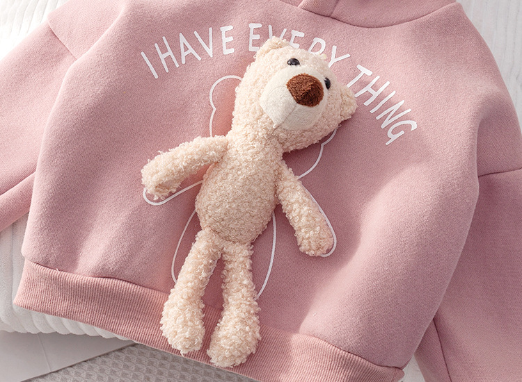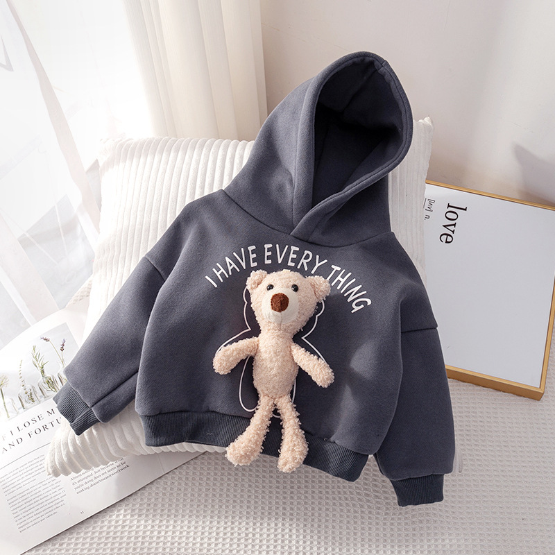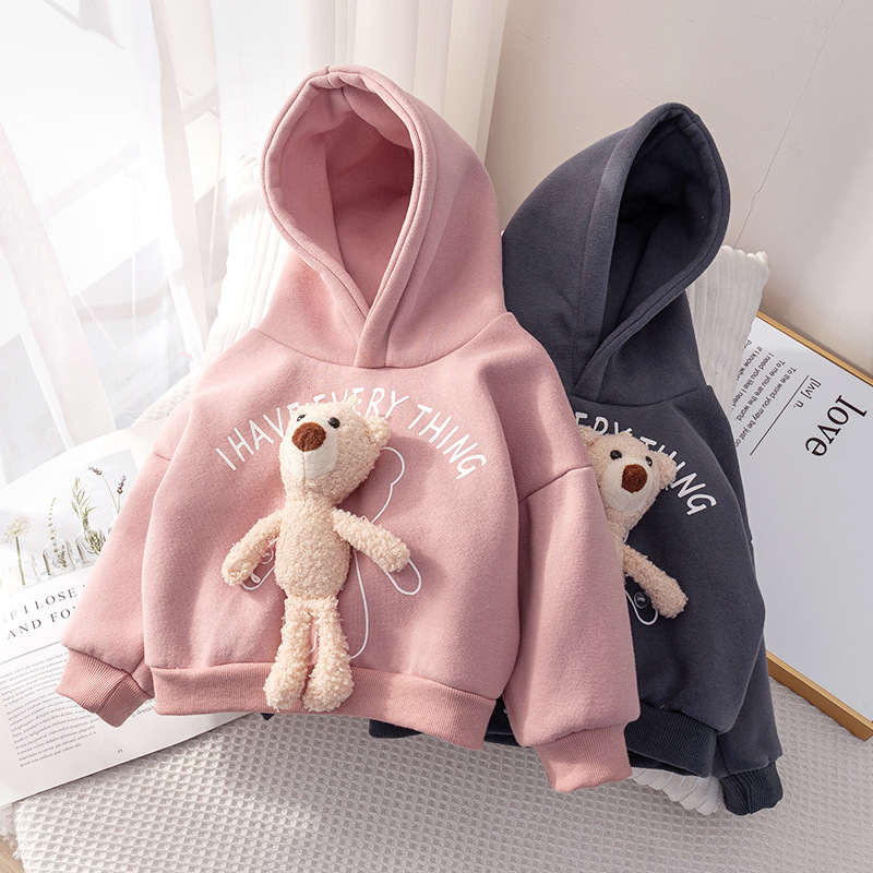 면 어린이 기모 스웨터 겨울 한국 스타일 아기 소녀 얇은 벨벳 세련된 소년 소녀 3 차원 만화 곰 탑
