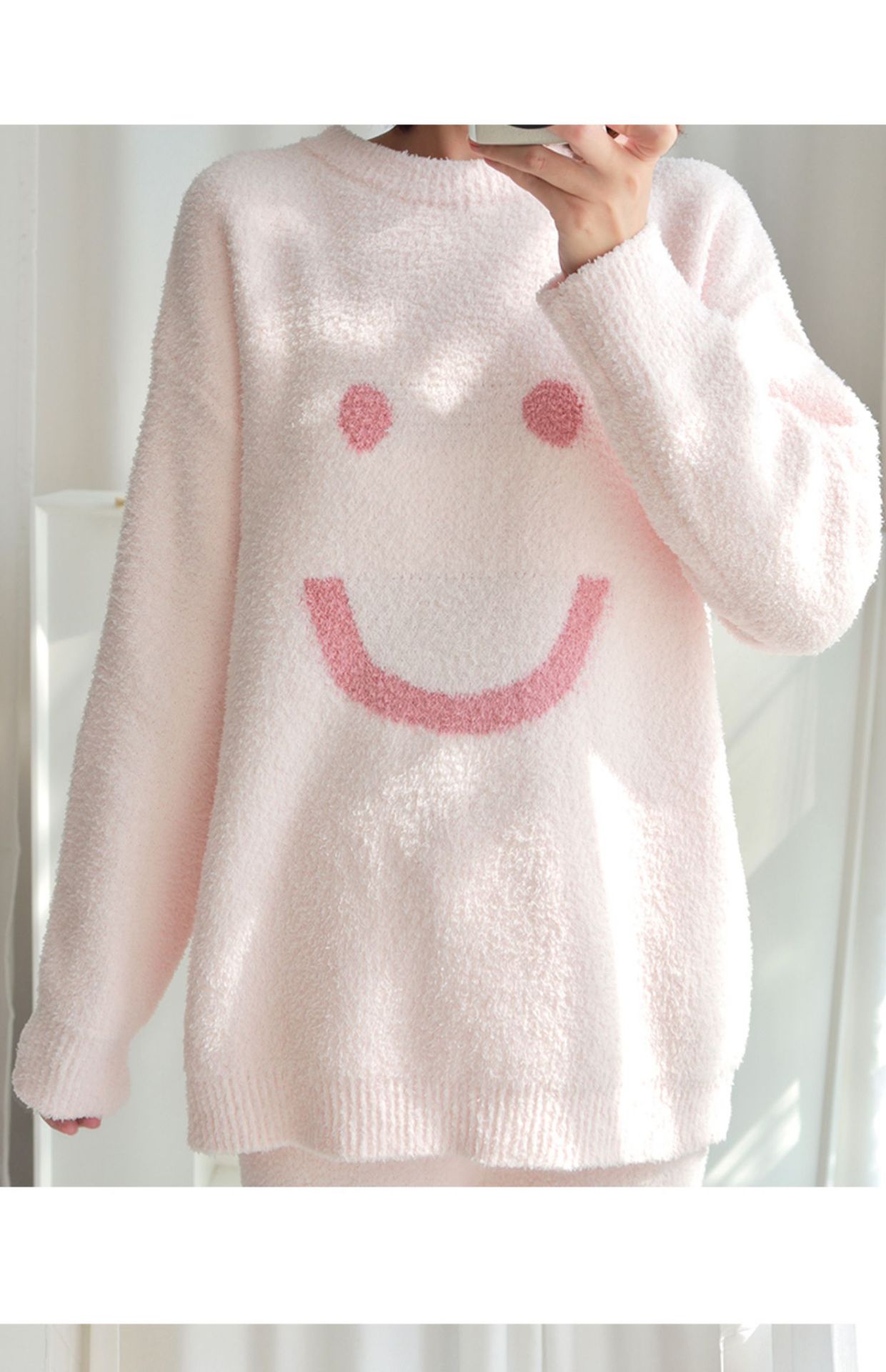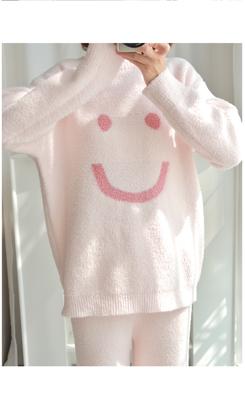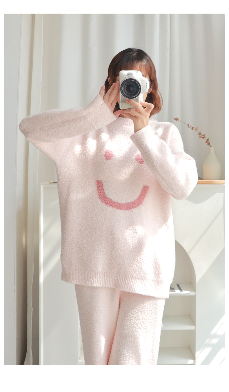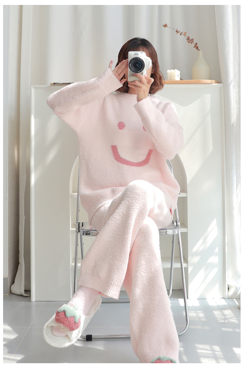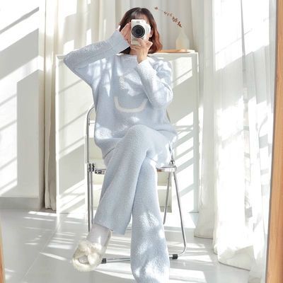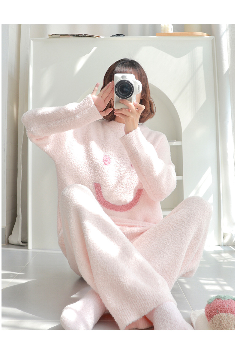 일본산 산호 벨벳 잠옷 여성용 겨울 두꺼운 플리스 2024년 신상 웃는 얼굴 외출 가능 홈웨어 세트