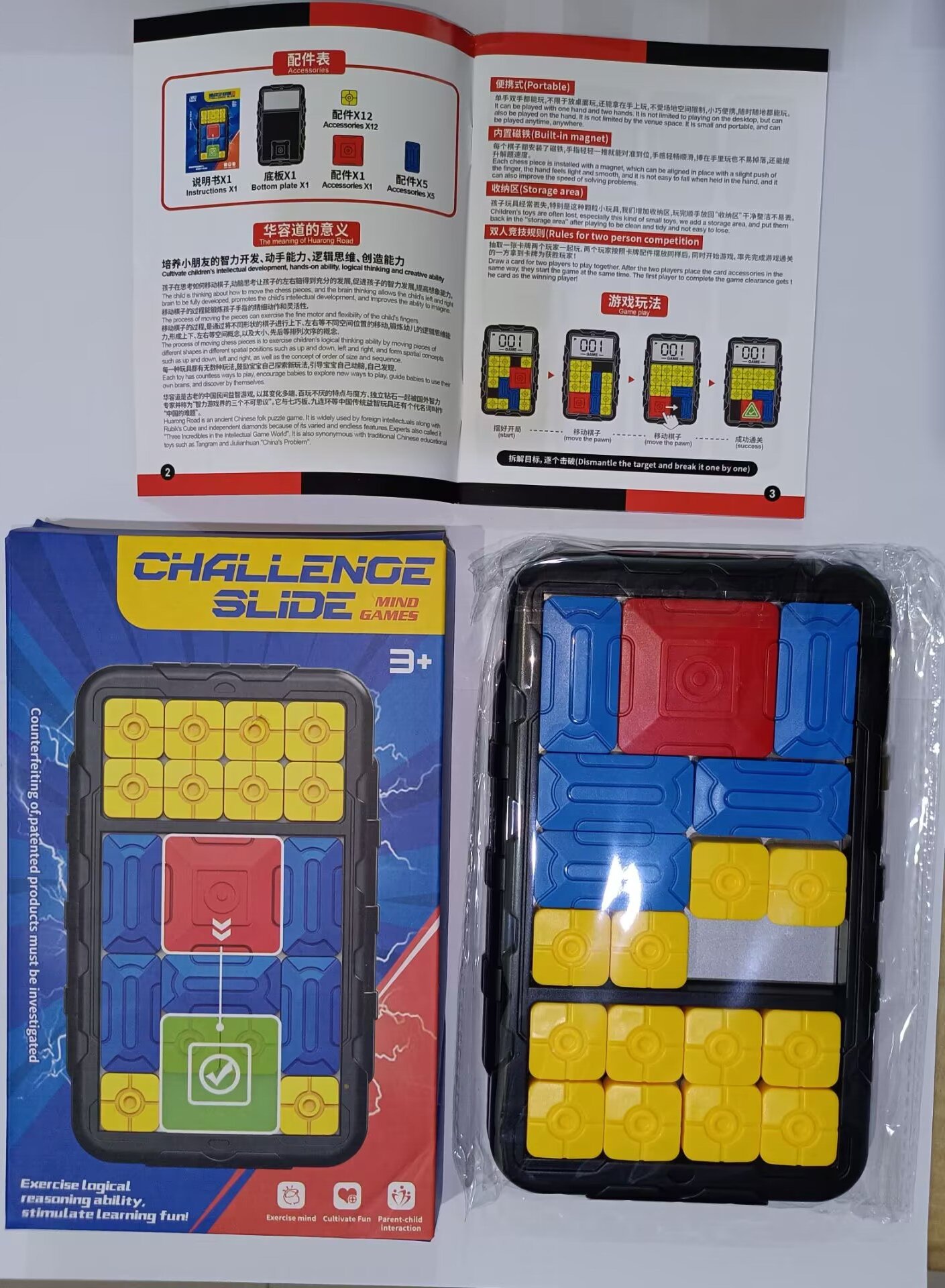 지능형 Huarong 도로 어린이 성인 슬라이딩 퍼즐 부모-자식 대화 형 논리 사고 게임 조기 교육 지능 완구