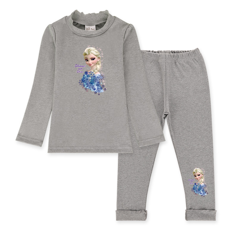 어린이베이스 세트 따뜻한 가을 옷과 바지 소녀 가을 새 세트 단색 홈 옷 귀 가장자리