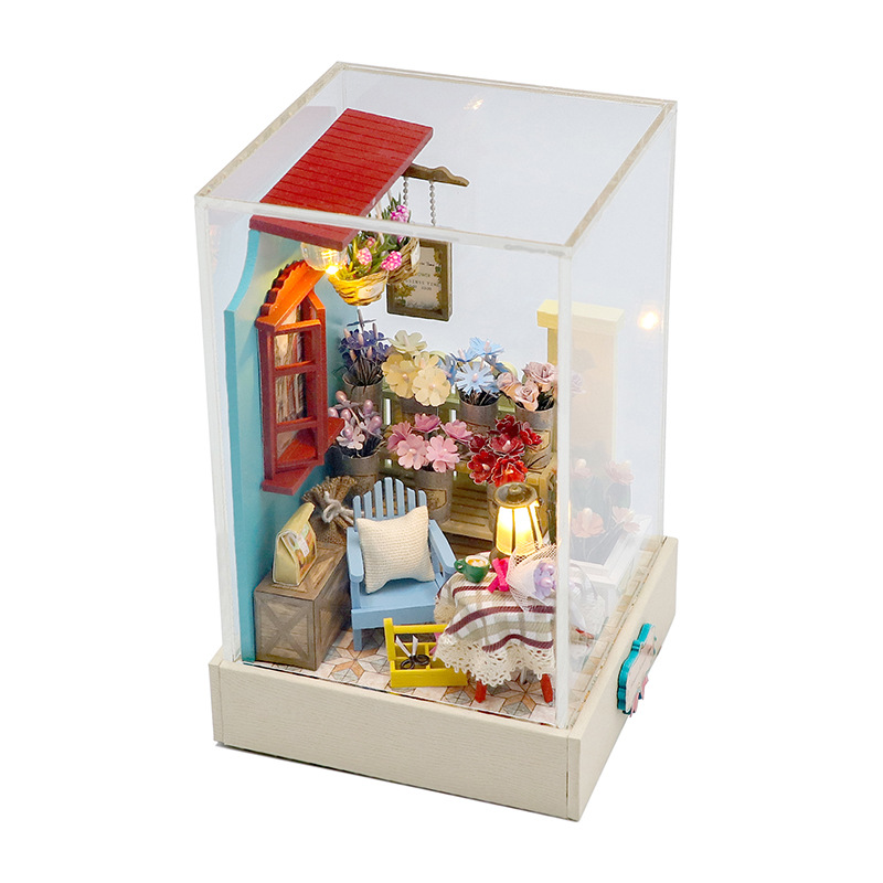 홍데 목조 주택 DIY 오두막 미니어처 빌딩 모델 수제 인형 하우스 소형 손 모래 테이블 도매 모델스토어 가기