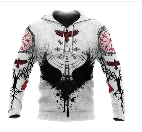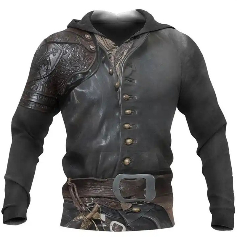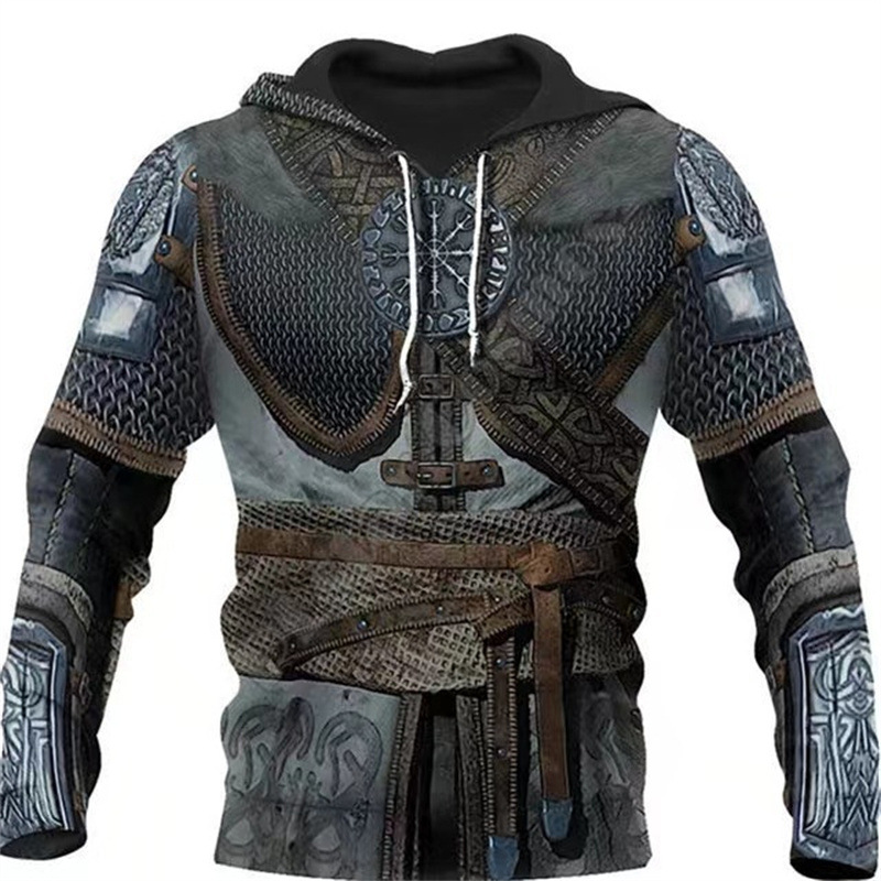 2024 유럽 및 미국 봄 가을 패션 신상 남성복 바이킹 신화 시리즈 멋진 갑옷 프린트 3D 후드티스토어 가기