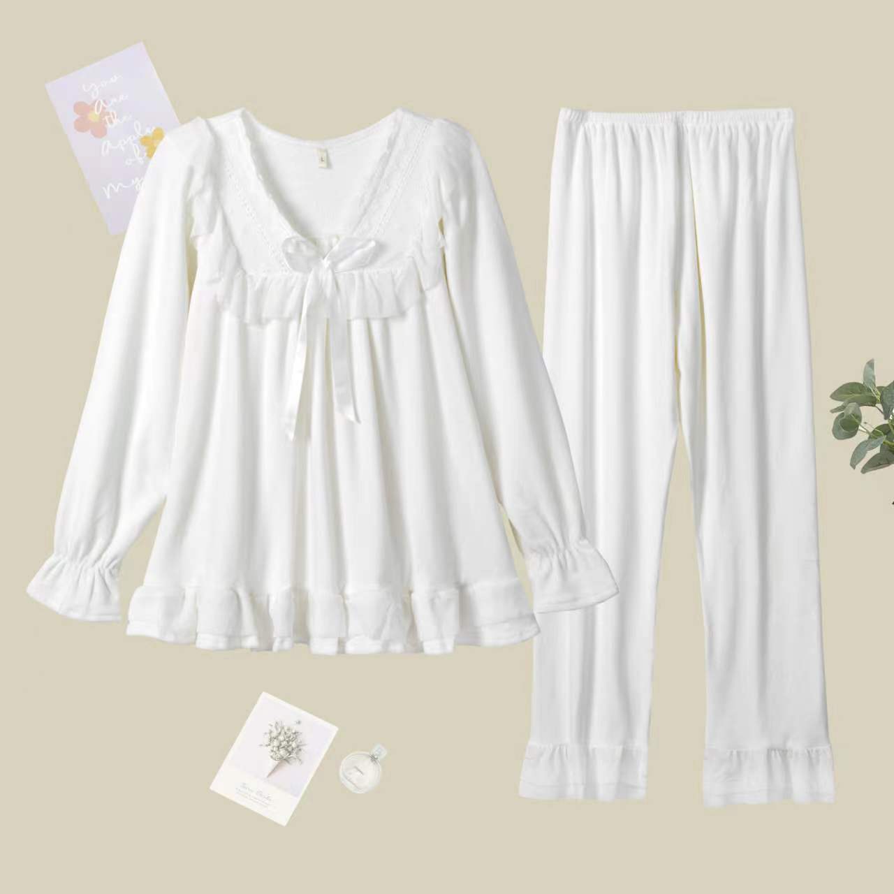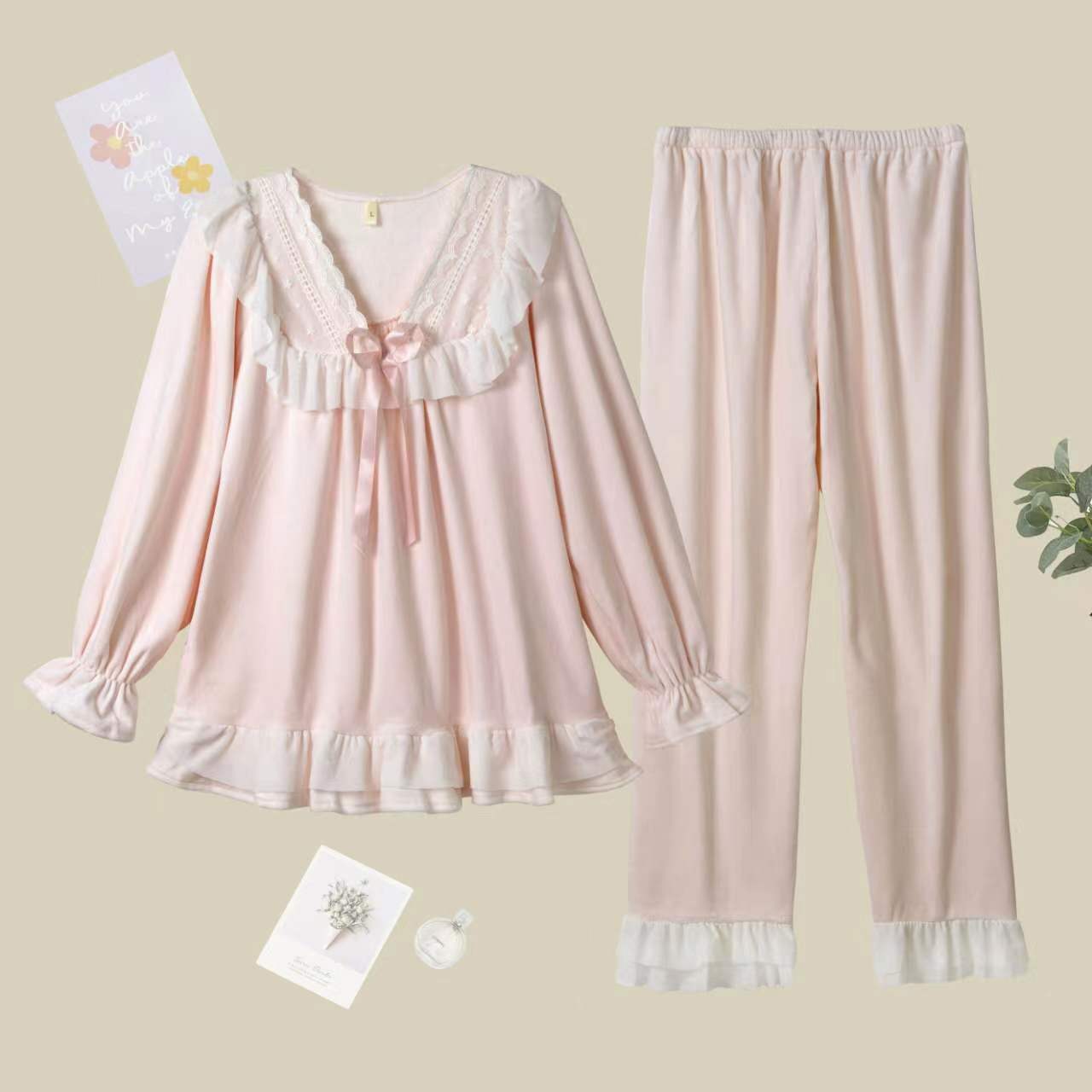 섬털 잠옷 여성용 가을 겨울 고급스러운 귀여운 인형 칼라 상의 소녀 감성 두꺼운 플러시 잠옷 세트