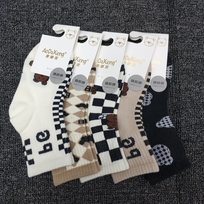 아오두 곰 어린이 스포츠 양말 가을과 겨울 긴 어린이 양말 모든 종류의 꽃 모양의 밝은 색상 어린이 양말스토어 가기