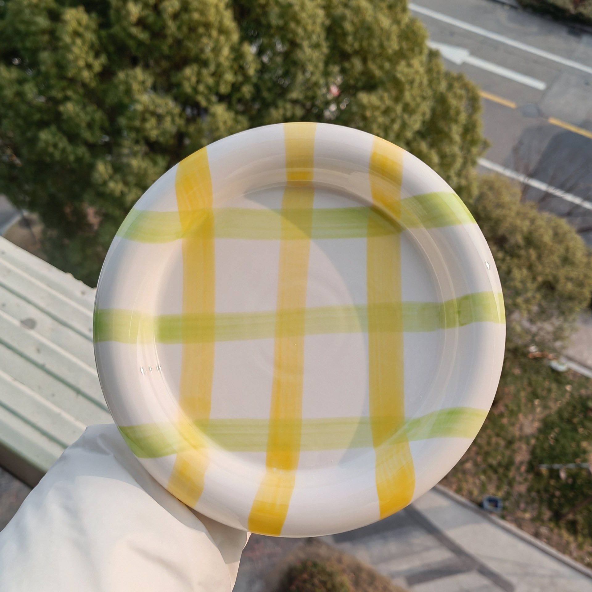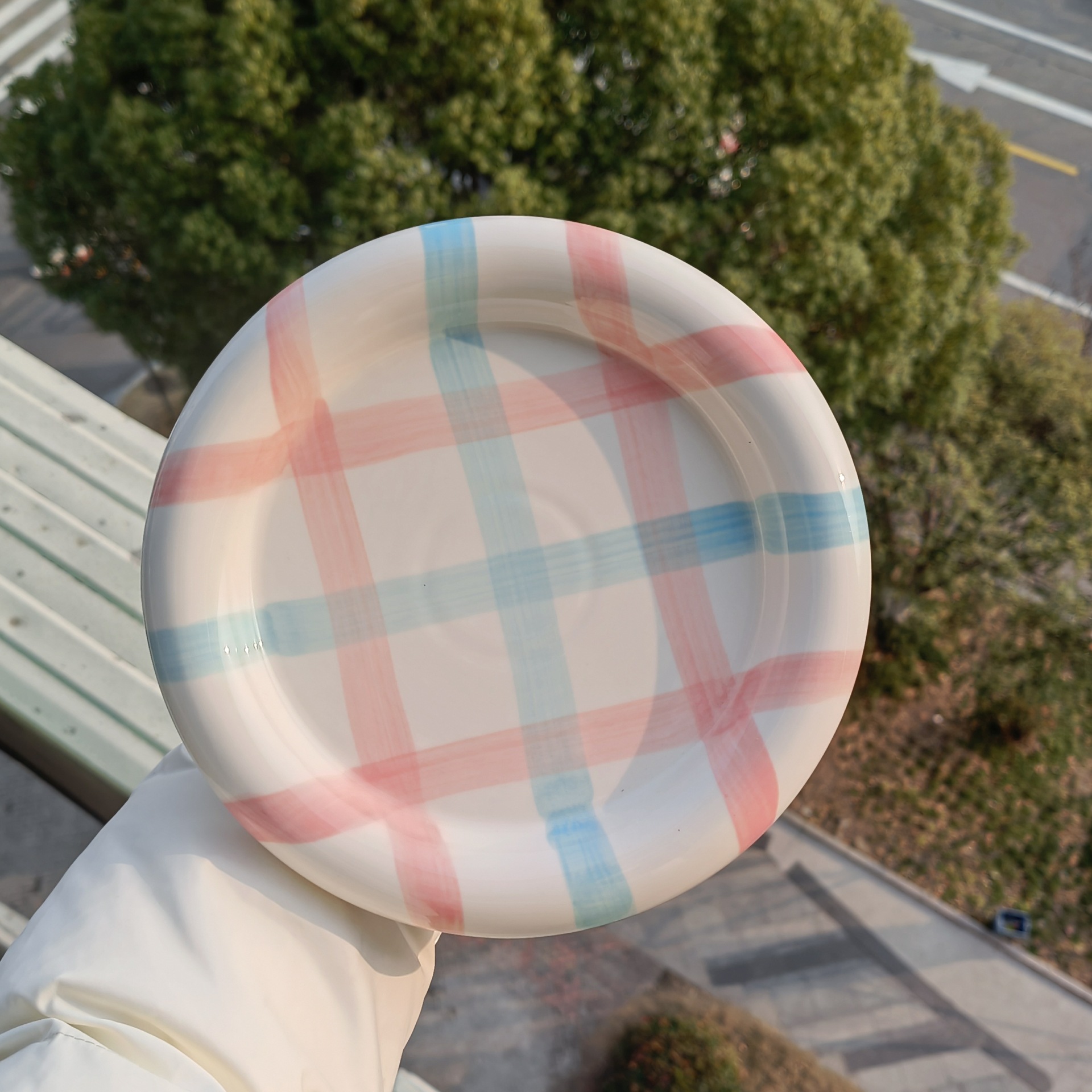 스타일 높은 색상 가치 스트라이프 웨이브 도트 언더 글레이즈 색상 세라믹 접시 낙서 디저트 접시 한국 아침 식사 포즈 VLOG 접시스토어 가기