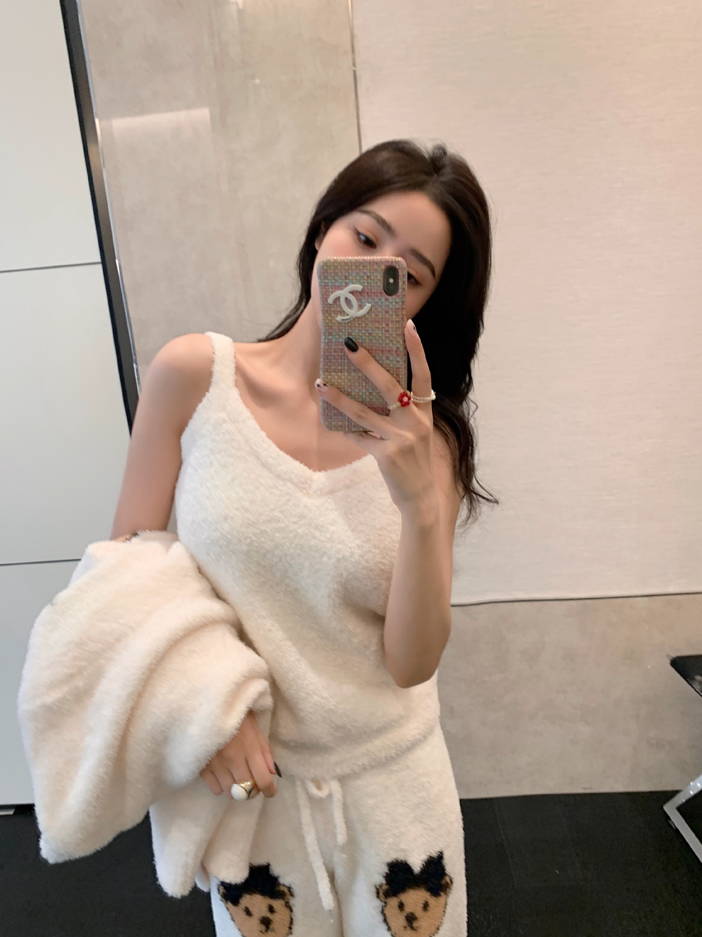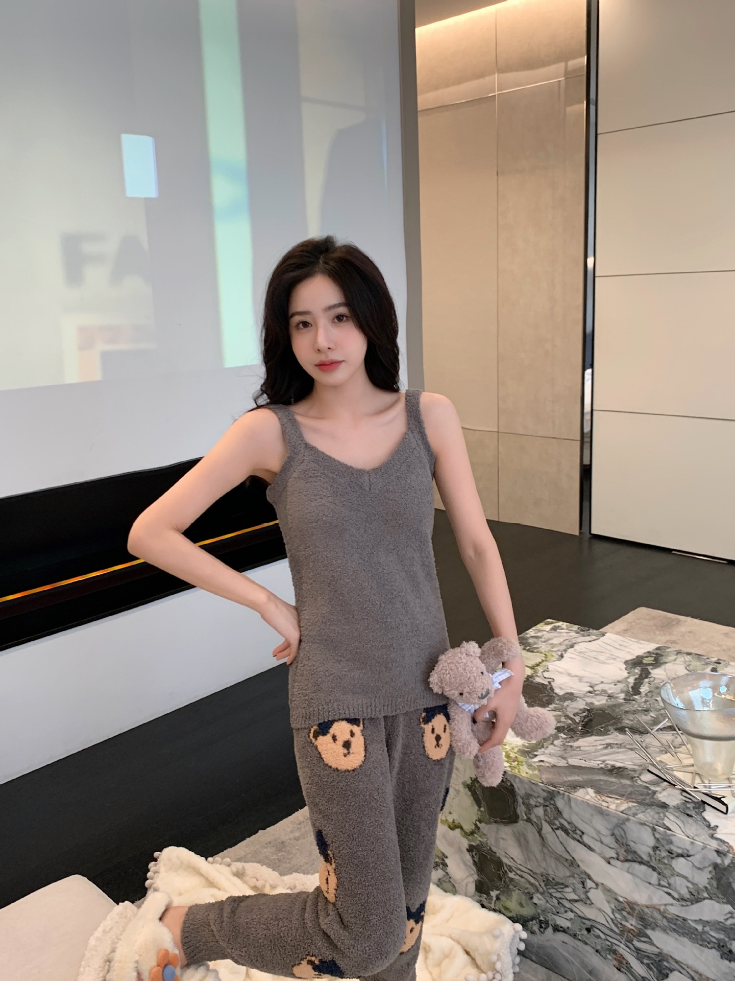 부드러운 가을과 겨울 새로운 달콤한 사랑 곰 귀여운 만화 따뜻한 가정 옷 잠옷 3 종 세트 세트스토어 가기
