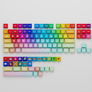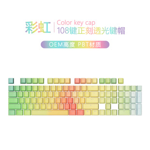 PBT字符正刻透光热升华键帽彩虹渐变色机械键盘帽通用键帽