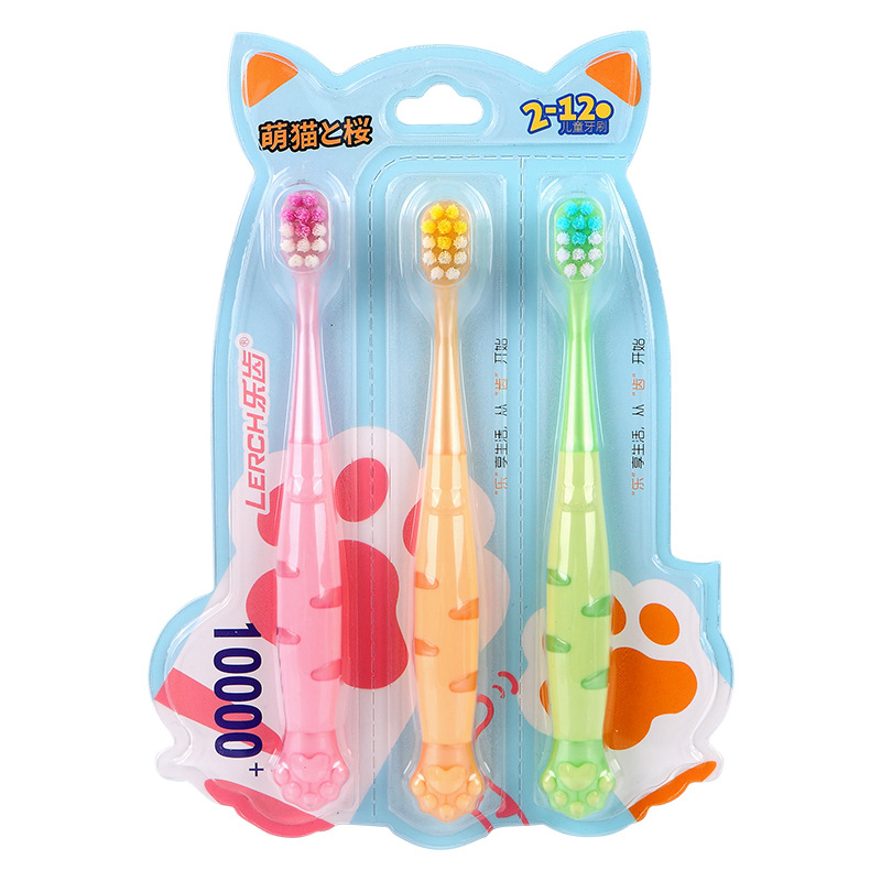 귀여운 고양이 발톱 어린이의 작은 머리를 즐기십시오 부드러운 머리 2-3-6-12 세 아기 어린이 장미 눈물 칫솔 멀티 팩