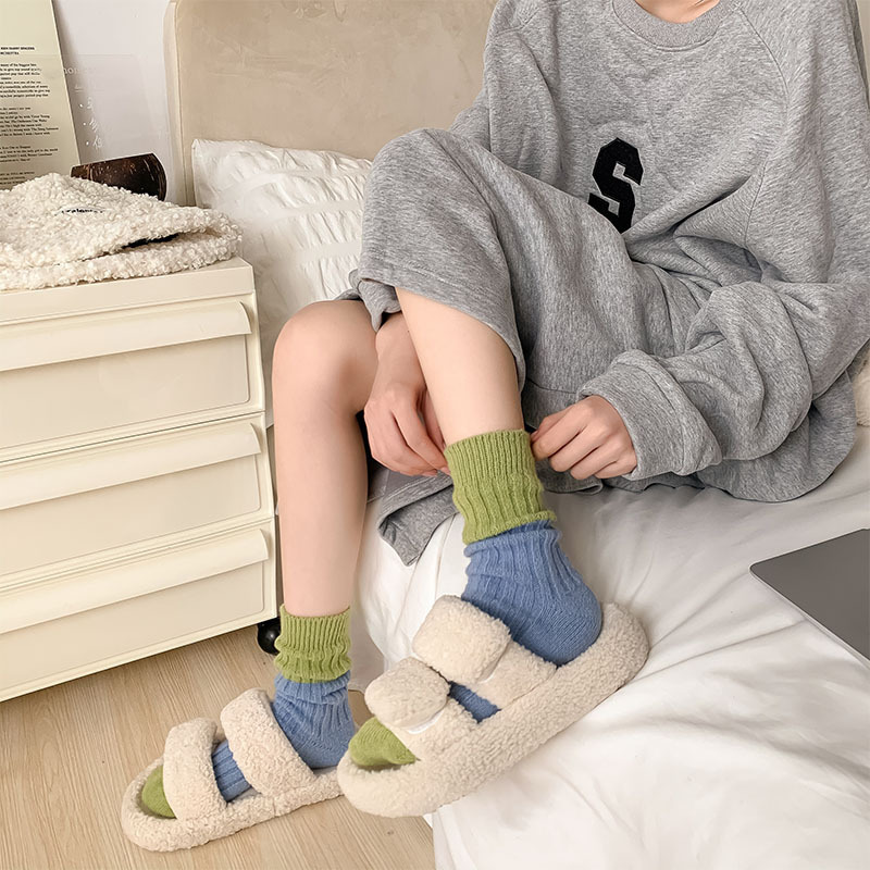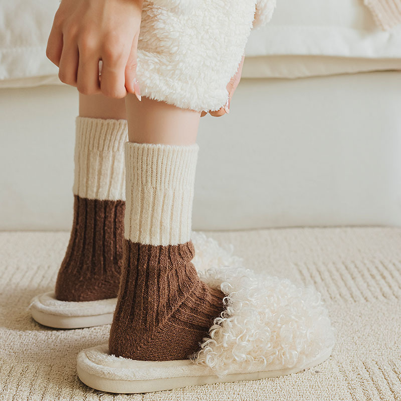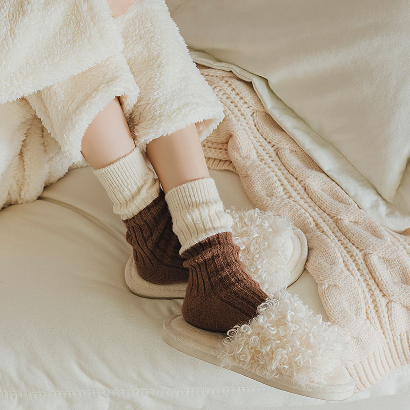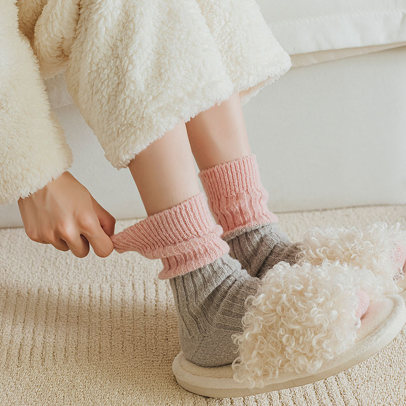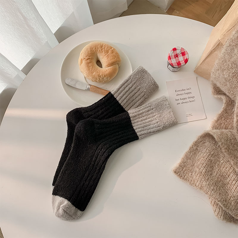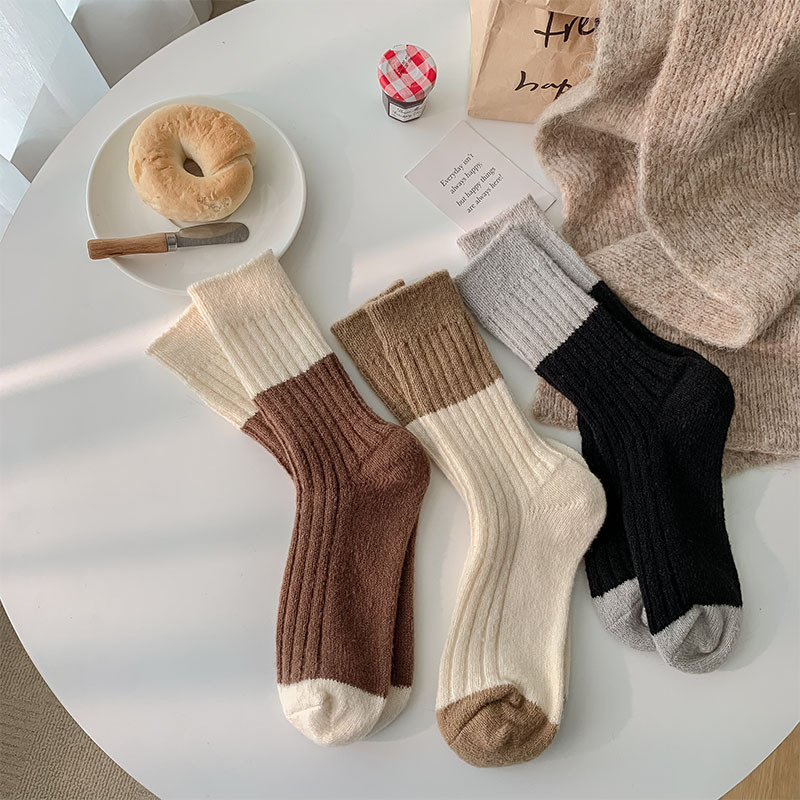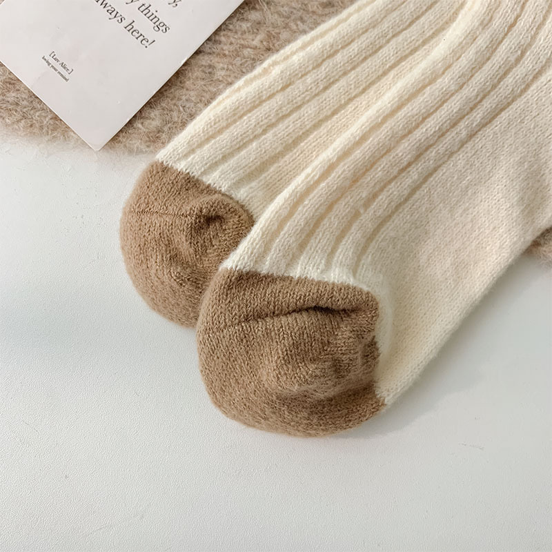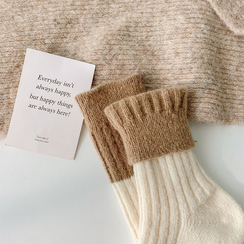양모 양말 어린이 쌀 커피 스티칭 파일 양말 겨울 두꺼운 따뜻한 일본 달콤한 대비 컬러 스타킹 Zhuji tide