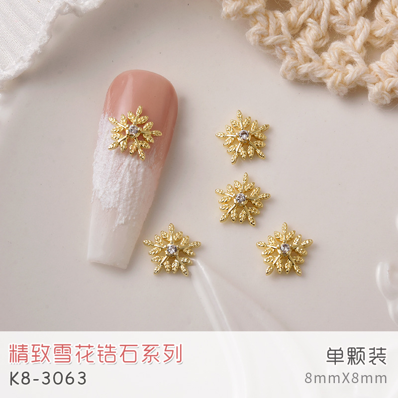 인터넷 연예인 빛 럭셔리 네일 아트 눈송이 지르콘 색상 보존 가을 겨울 크리스마스 새해 다이아몬드 인기있는 금속 네일 장식 도매스토어 가기