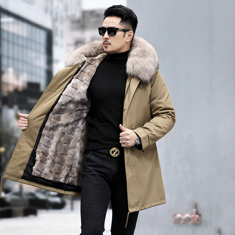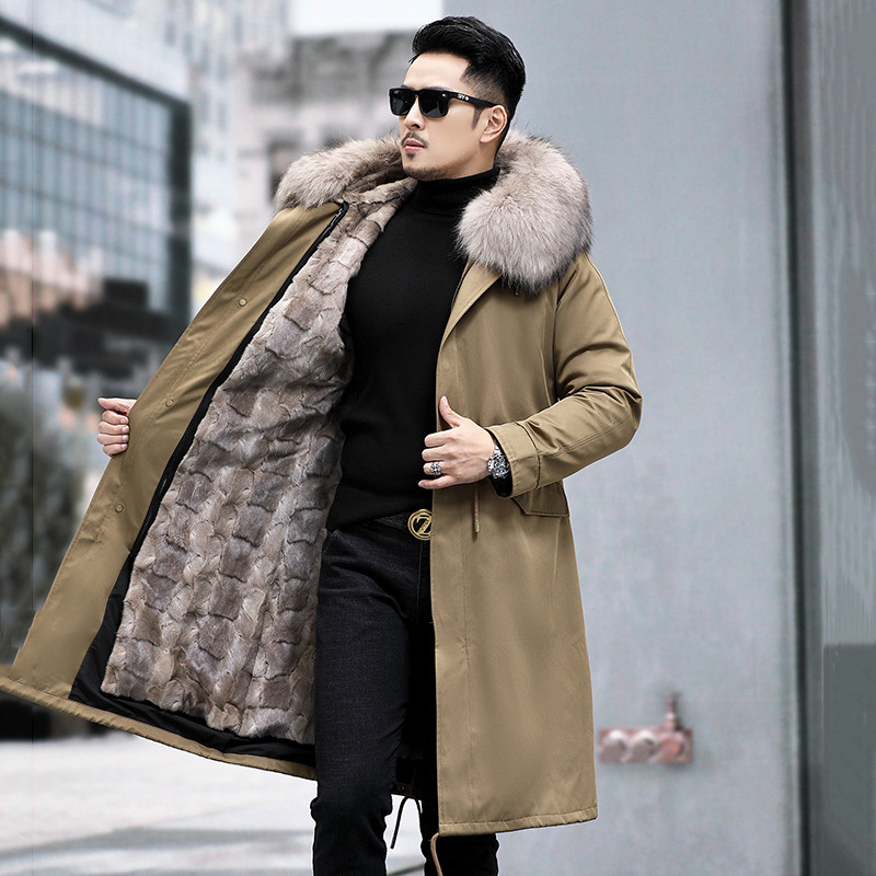 무릎 위 롱 파이크 의류 남성용 수입 밍크 전체 밍크 라이너 모피 원피스 정품 가죽 모피 밍크 코트 재킷