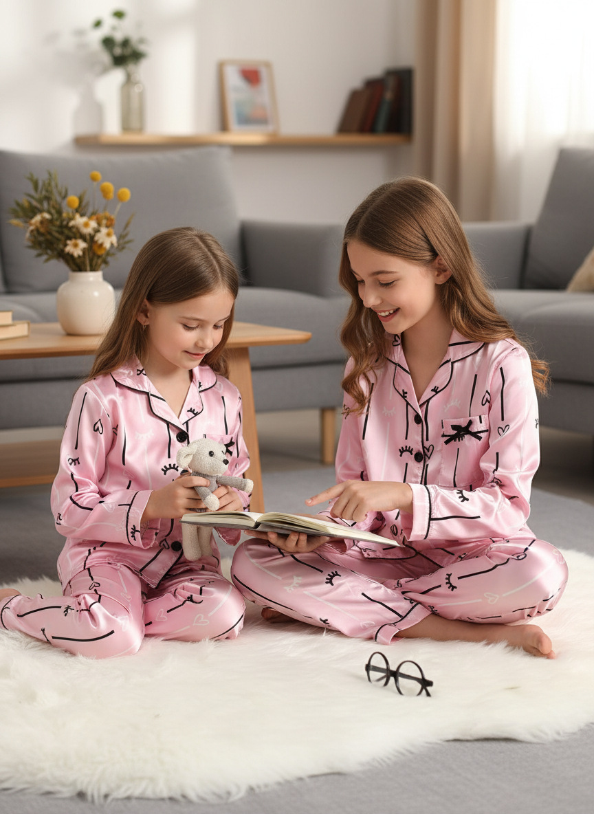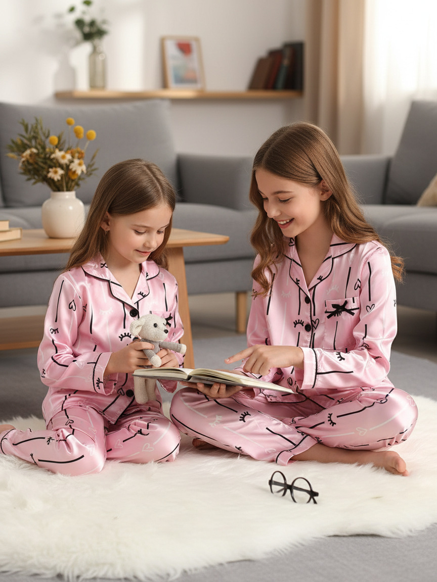 대외 무역 가을 겨울 신상 긴팔 아동 잠옷 세트, 중대형 아동용 가디건, 모조 실크 따뜻한 홈웨어, 가을 여아용