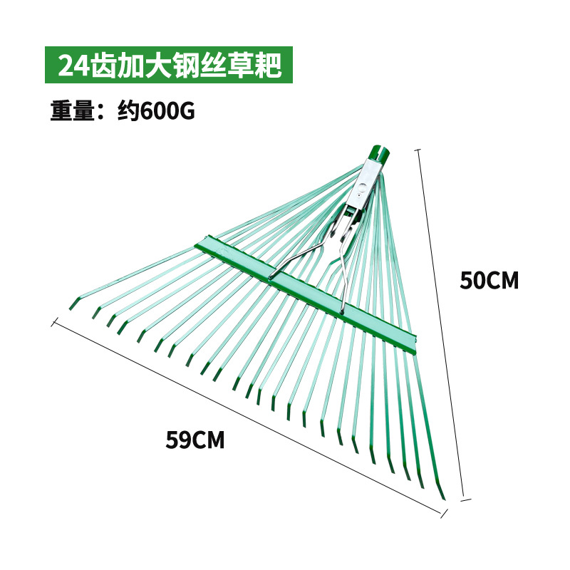 • 24개의 톱니 확대 및 넓어진 플랫 와이어 잔디 갈퀴 + 1.2 강철 손잡이