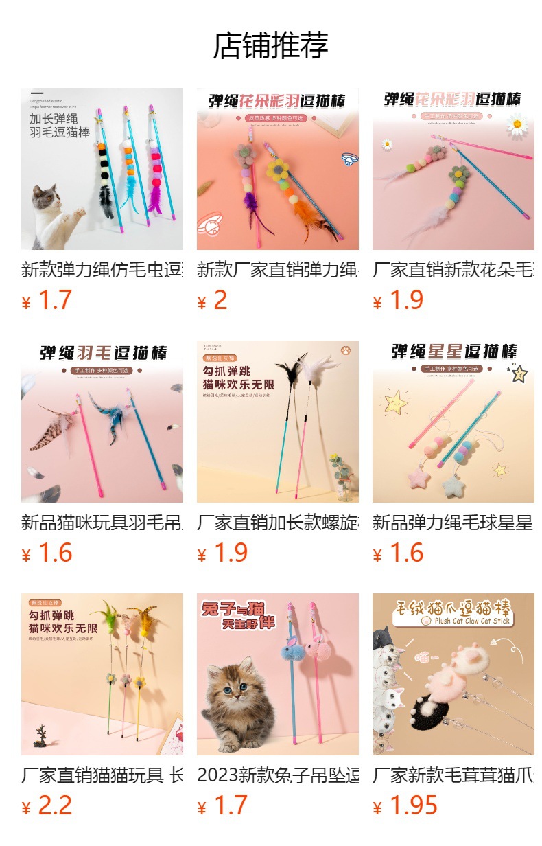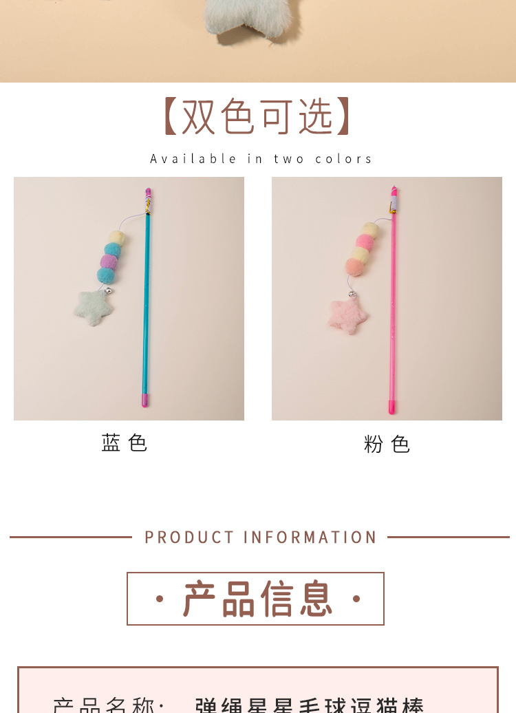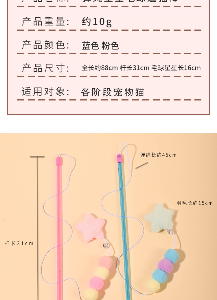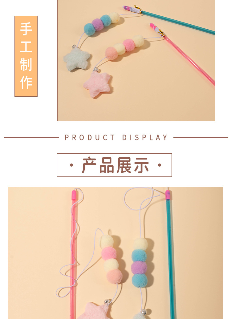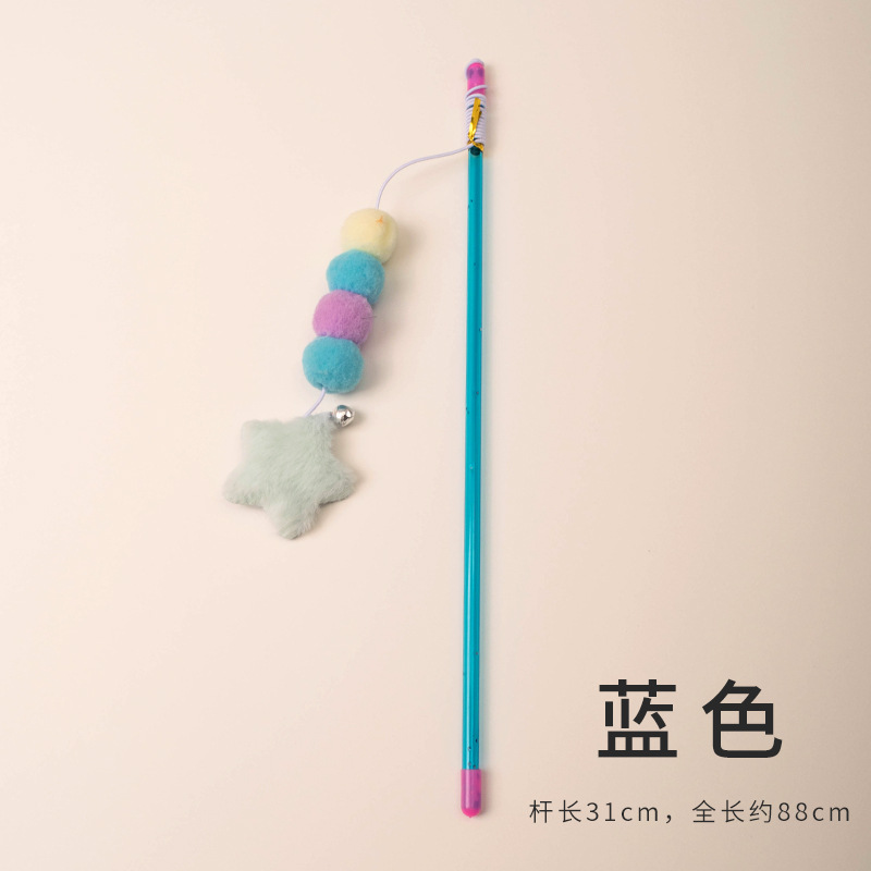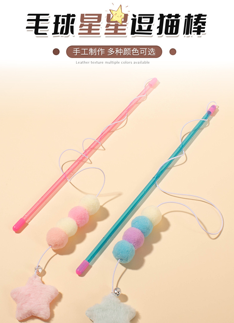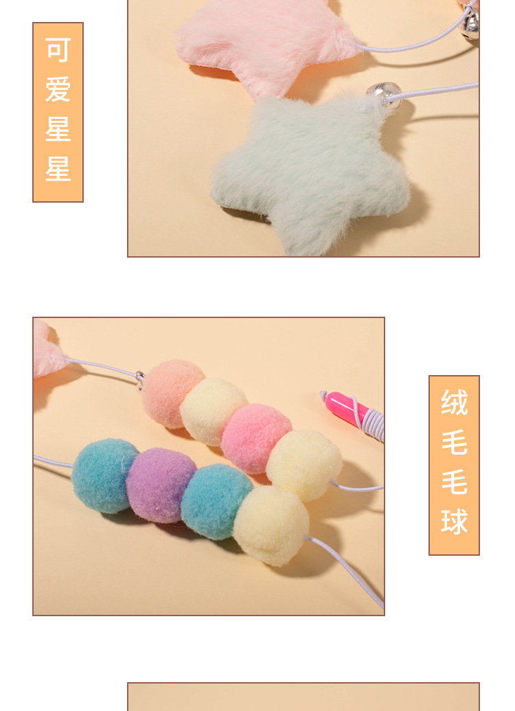 새로운 탄성 로프 퍼 볼 스타 펜던트 고양이 스틱 고양이 스크래치 물린 방지 고양이 스틱 고양이 장난감 공장 콘센트스토어 가기