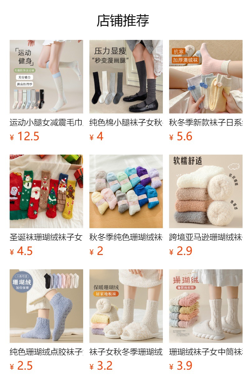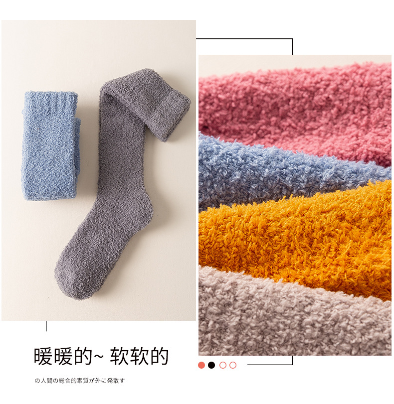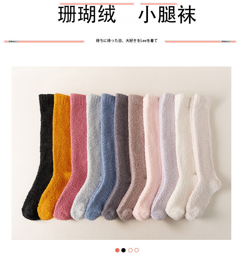 珊瑚绒袜子女小腿月子袜冬季产后长筒袜加厚加绒地板袜女睡眠袜子诸暨袜子批发