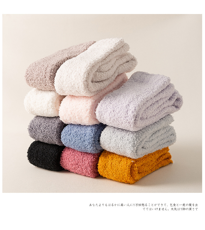 산호 양털 커프 양말 여성용 털이없는 따뜻한 중간 길이 양말 겨울 두꺼운 봉제 수면 양말 수건 바닥 양말스토어 가기