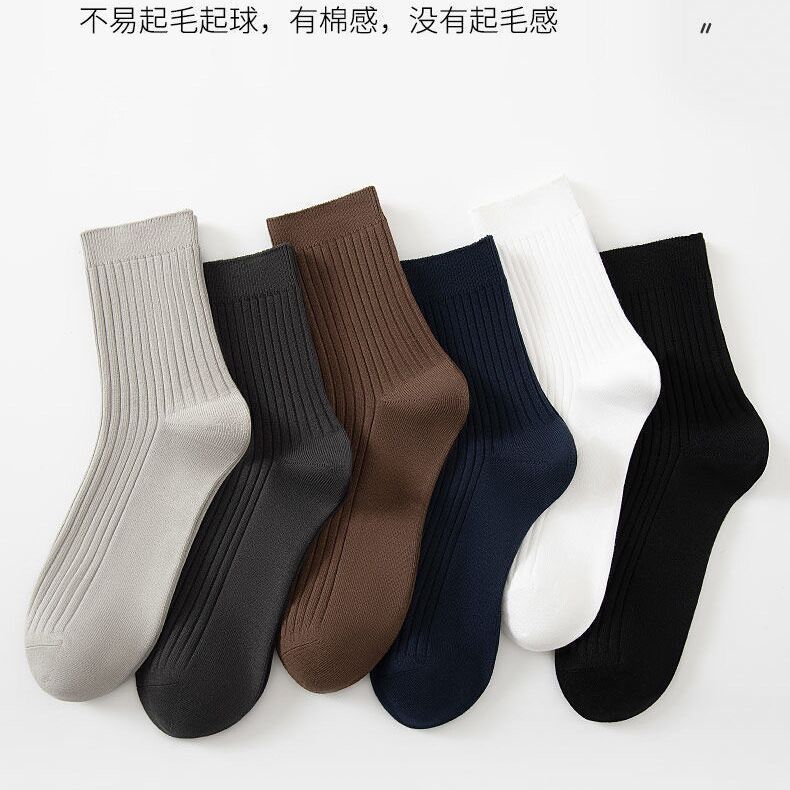 남성용 가을 단색 종아리 양말, 스트라이프 무지 세로 스트라이프 면 양말, 남성용 모조 이중 바늘 스트라이프 종아리 양말스토어 가기