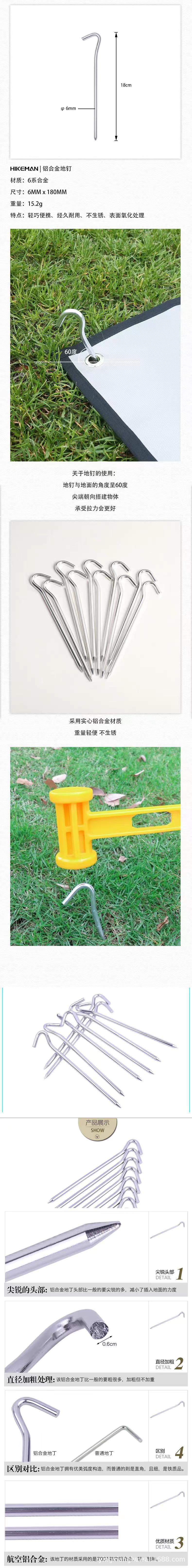 야외 알루미늄 합금 그라운드 네일 텐트 방풍 로프 액세서리 길어진 대담한 캐노피 매트 라운드 고정 접지
