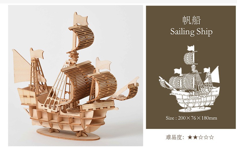 종이 모델 나무 모델 수제 DIY 3D 모델 장식품 장식 제품 바다 입체 모델-세일링 보트스토어 가기
