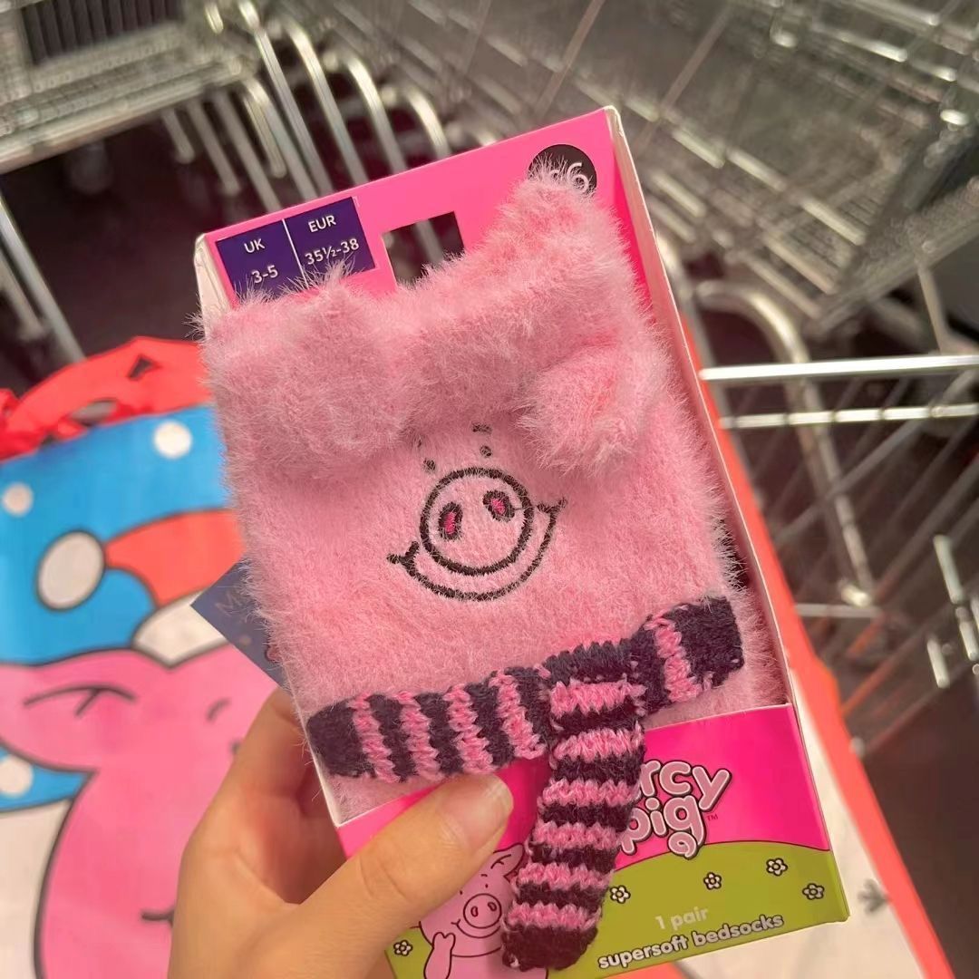 가을과 겨울 슈퍼 귀여운 봉제 양말 PercyPig 양말 두꺼운 핑크 돼지 밍크 양말과 여성의 트레몰로스토어 가기