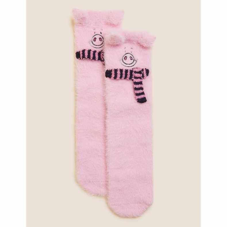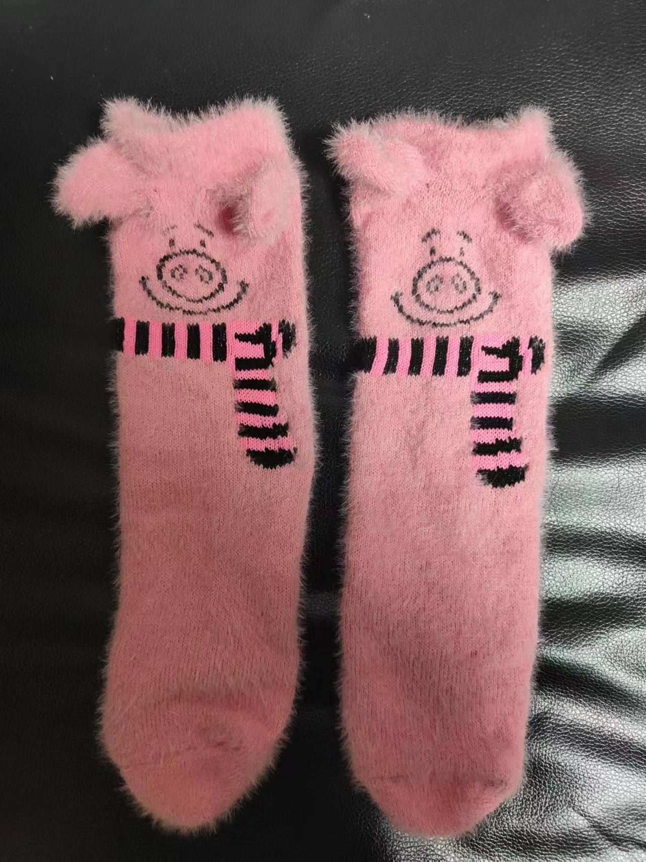 가을과 겨울 슈퍼 귀여운 봉제 양말 PercyPig 양말 두꺼운 핑크 돼지 밍크 양말과 여성의 트레몰로