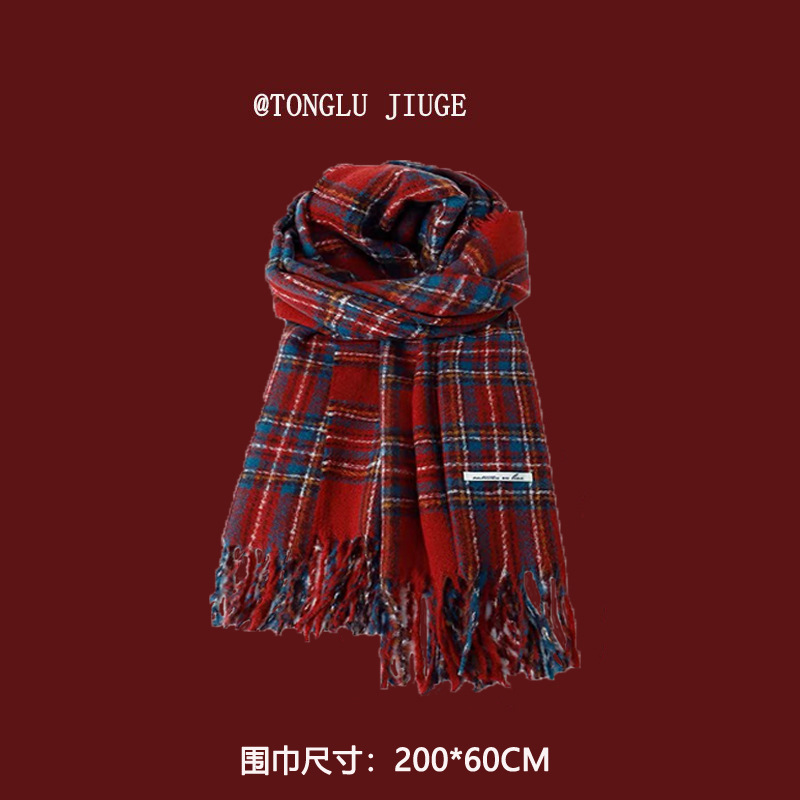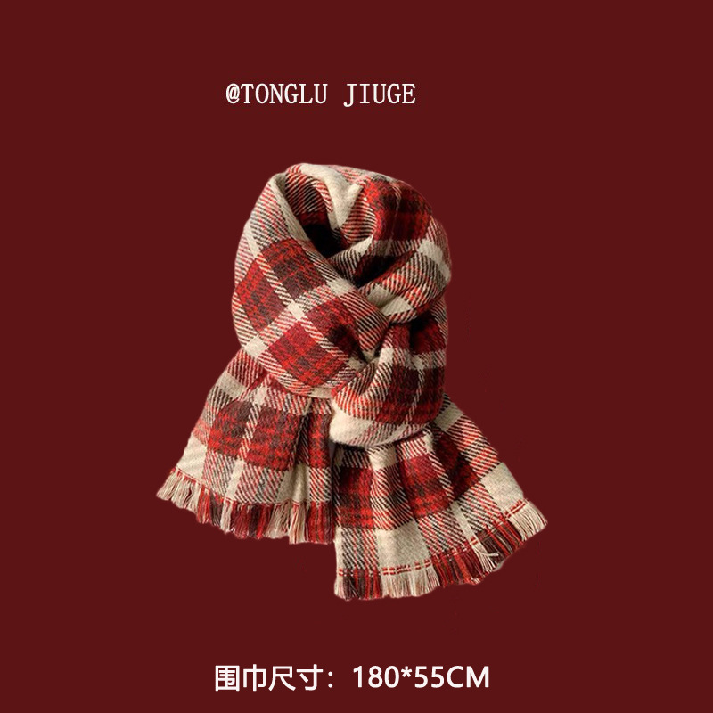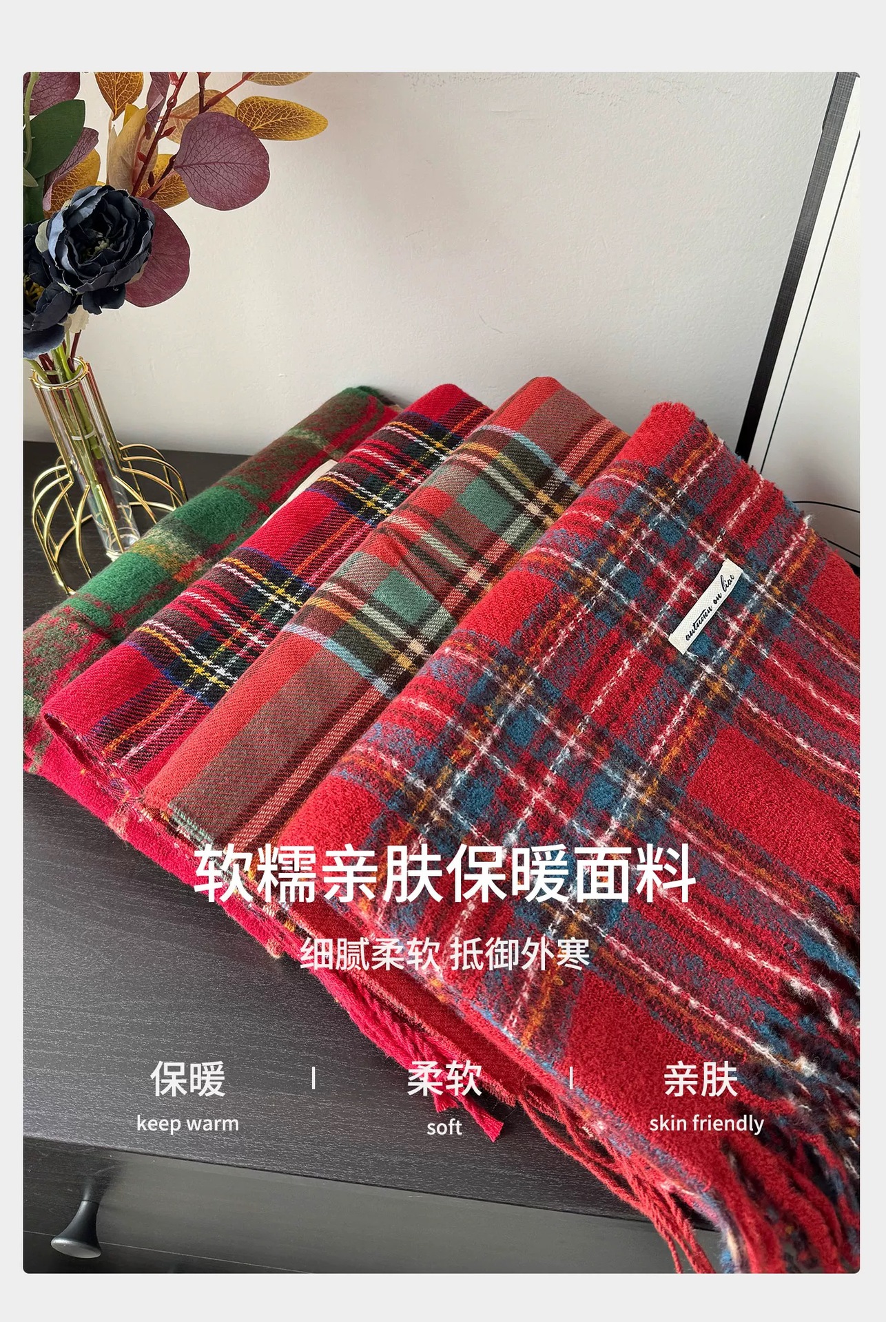 새해 크리스마스 선물 빨간 격자 무늬 스카프 여성의 가을과 겨울 따뜻한 분위기 모든 경기 학생 커플 스카프스토어 가기