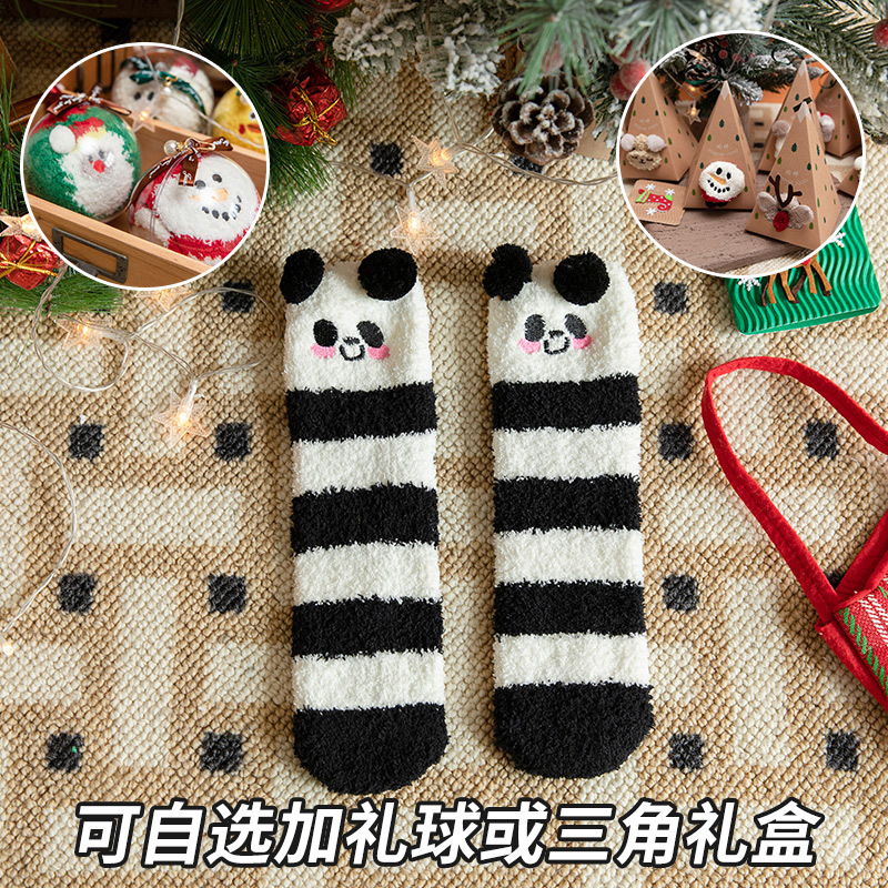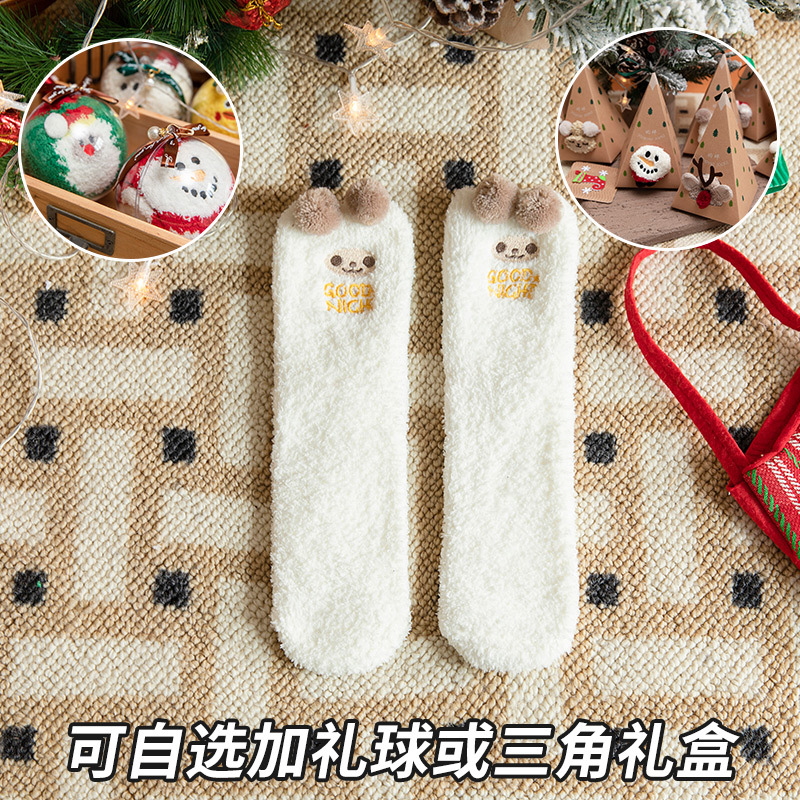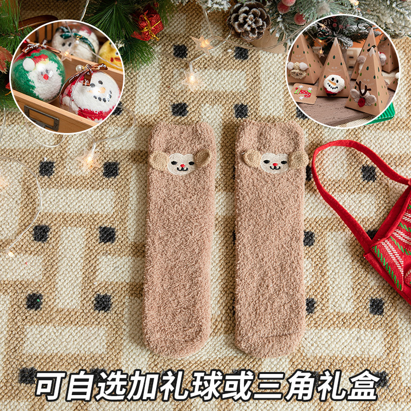 크리스마스 양말 중간 배럴 가을과 겨울 남성과 여성 두꺼운 산호 벨벳 양말 크리스마스 선물 상자 양말 겨울 크리스마스 공