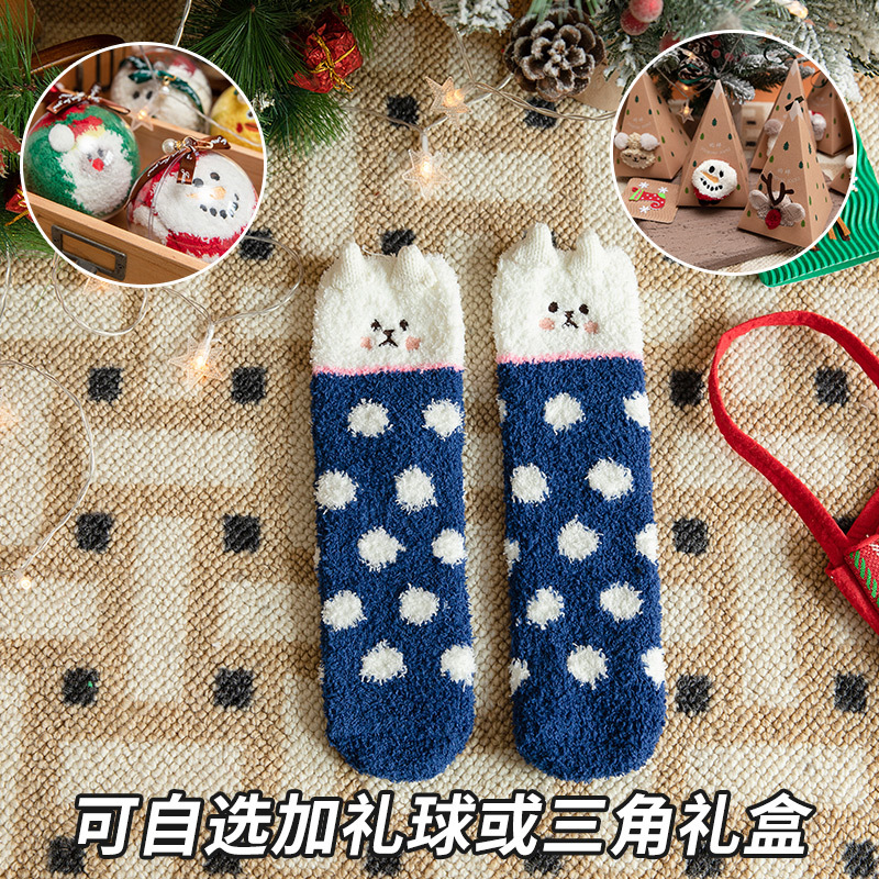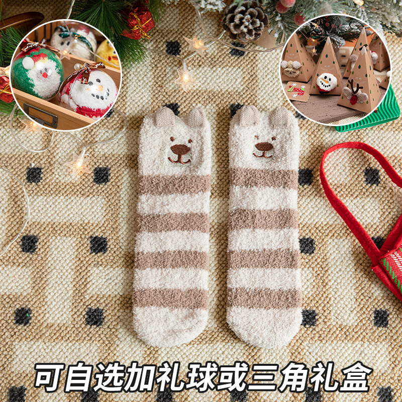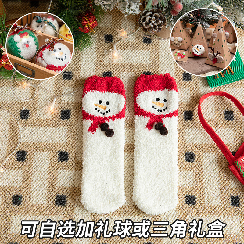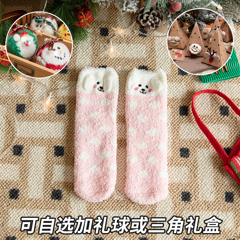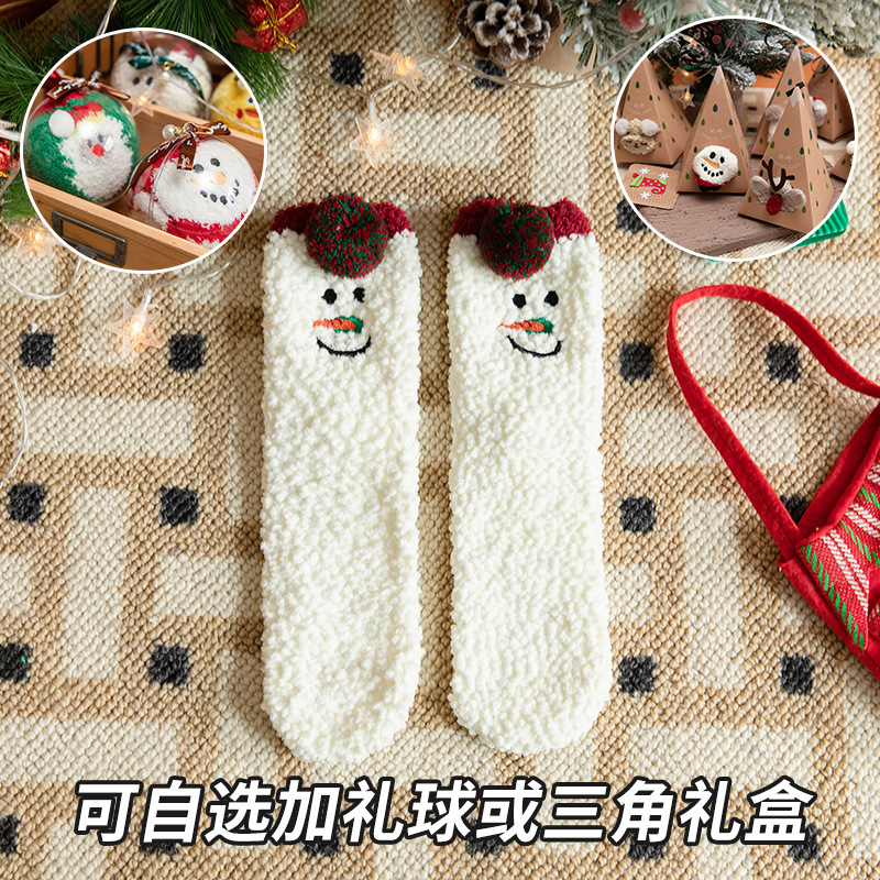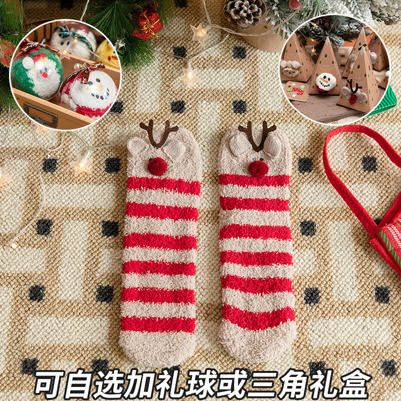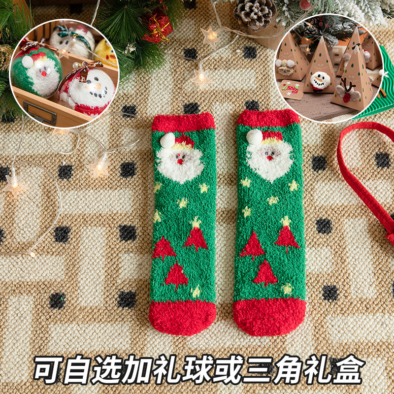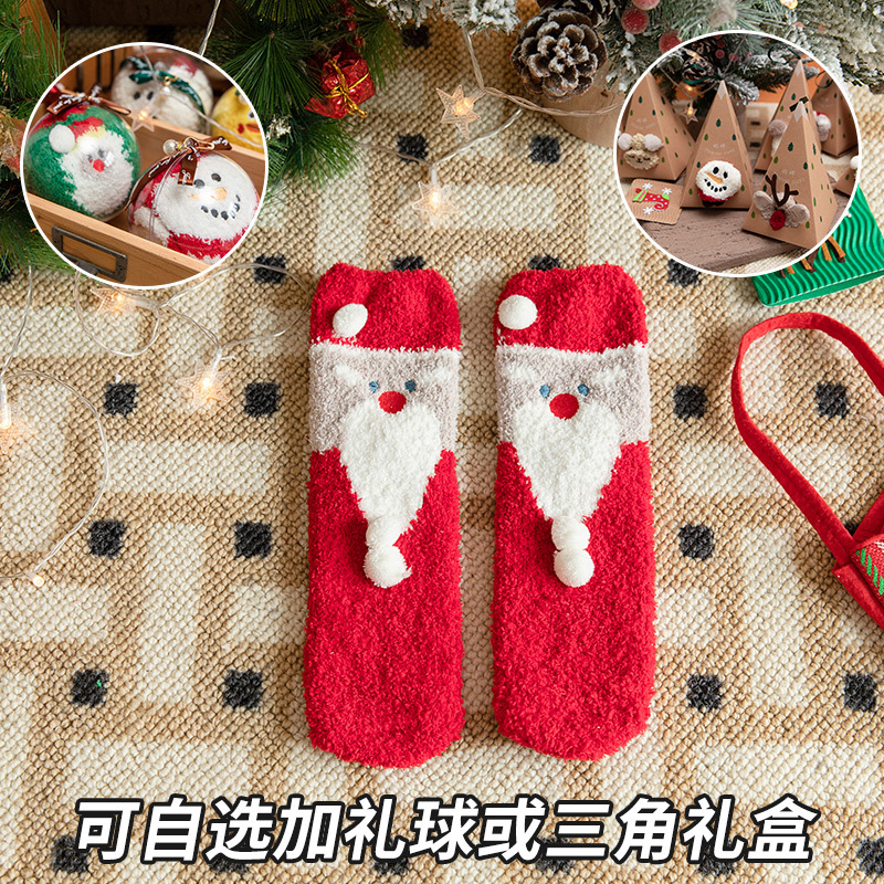 크리스마스 양말 중간 배럴 가을과 겨울 남성과 여성 두꺼운 산호 벨벳 양말 크리스마스 선물 상자 양말 겨울 크리스마스 공스토어 가기