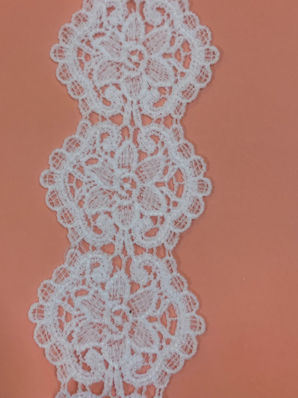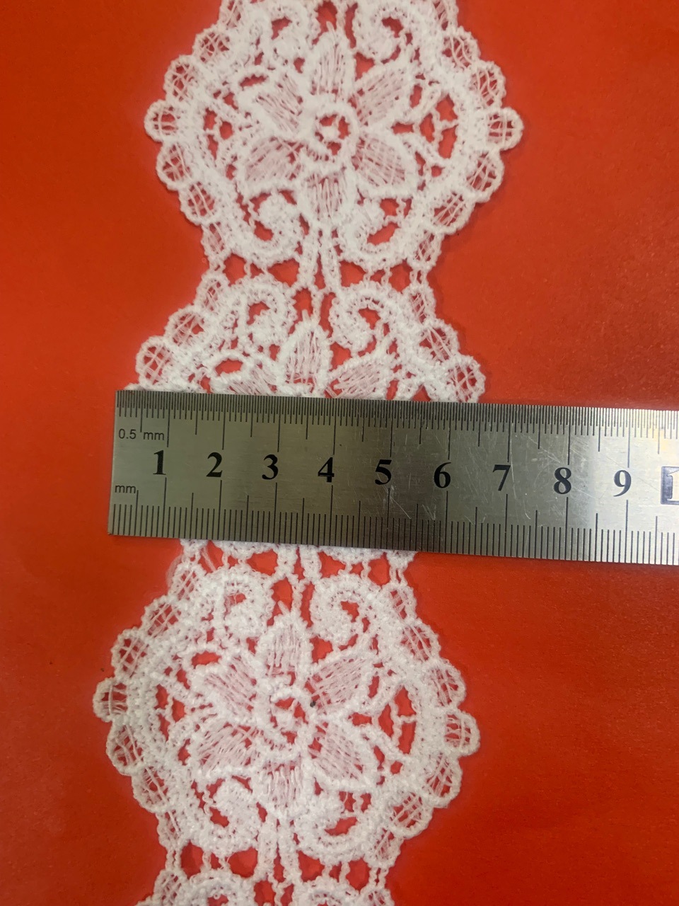 mlcs3044#:宝贝6.5cm宽,牛奶丝水溶面料,颜色本白,颜色可自定义,另加染色费,除黑色外,其它颜色要有一定数量,适用于服装辅料女装童装,胸边,袖边,绣花花边,婚纱,窗帘,布艺,厂家生产速度快,价格实惠,质量好,欢迎来样定做
