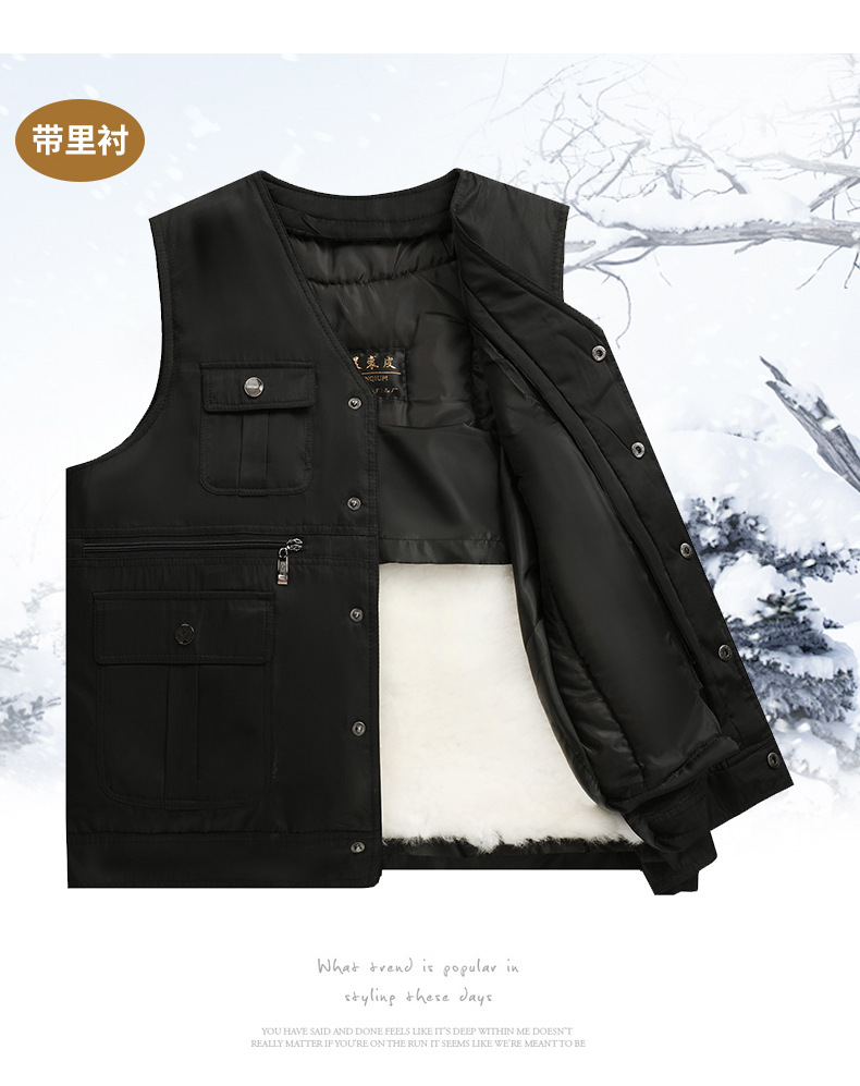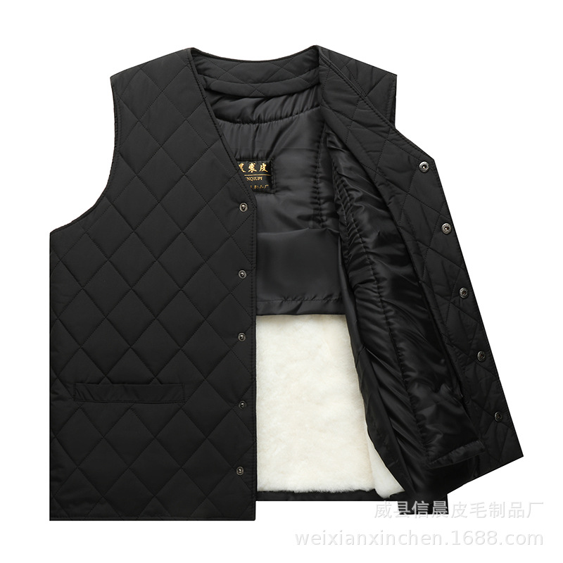 양모 조끼 제조 업체 도매 고급 모피 통합 남성 중년 및 노인 겨울 따뜻한 양털 조끼