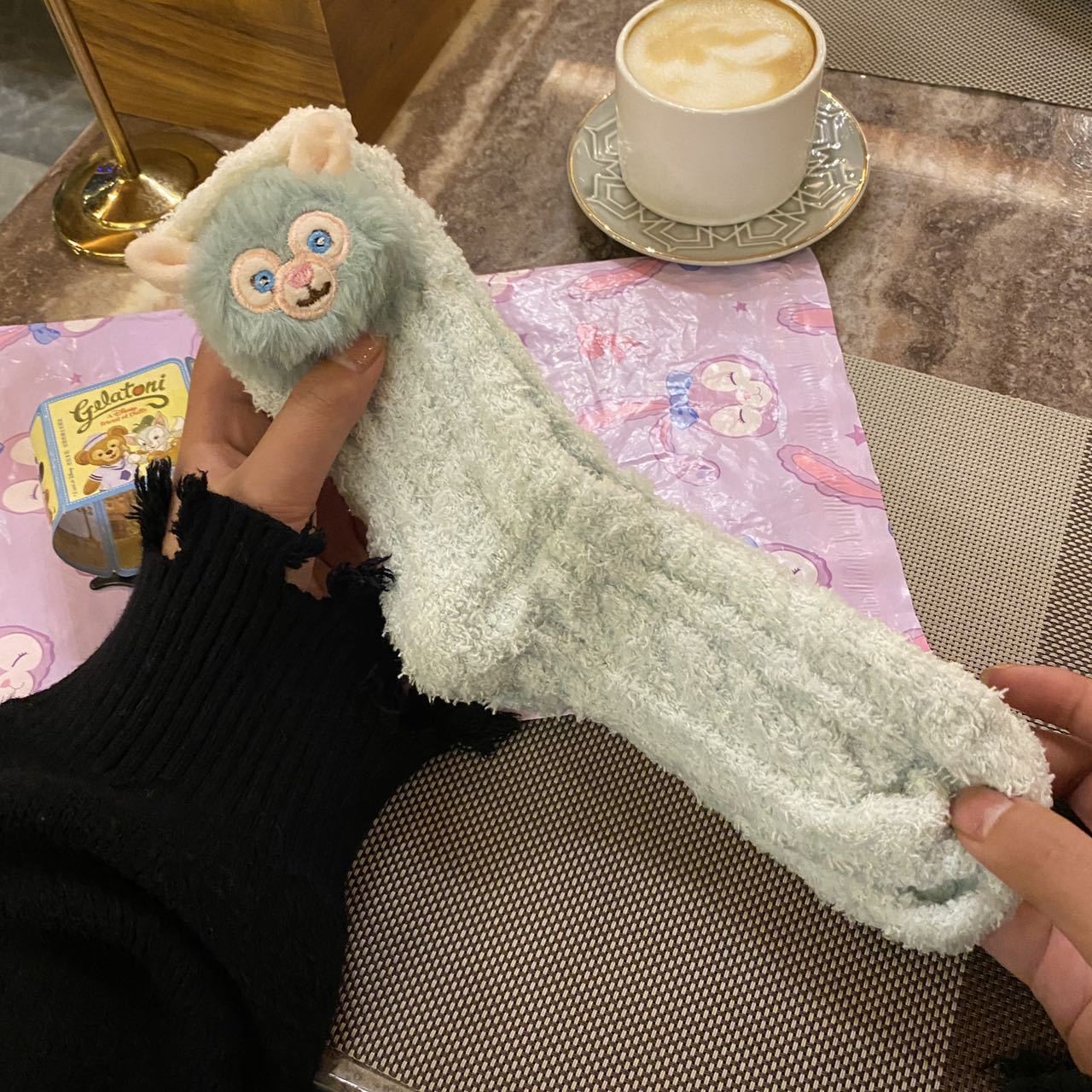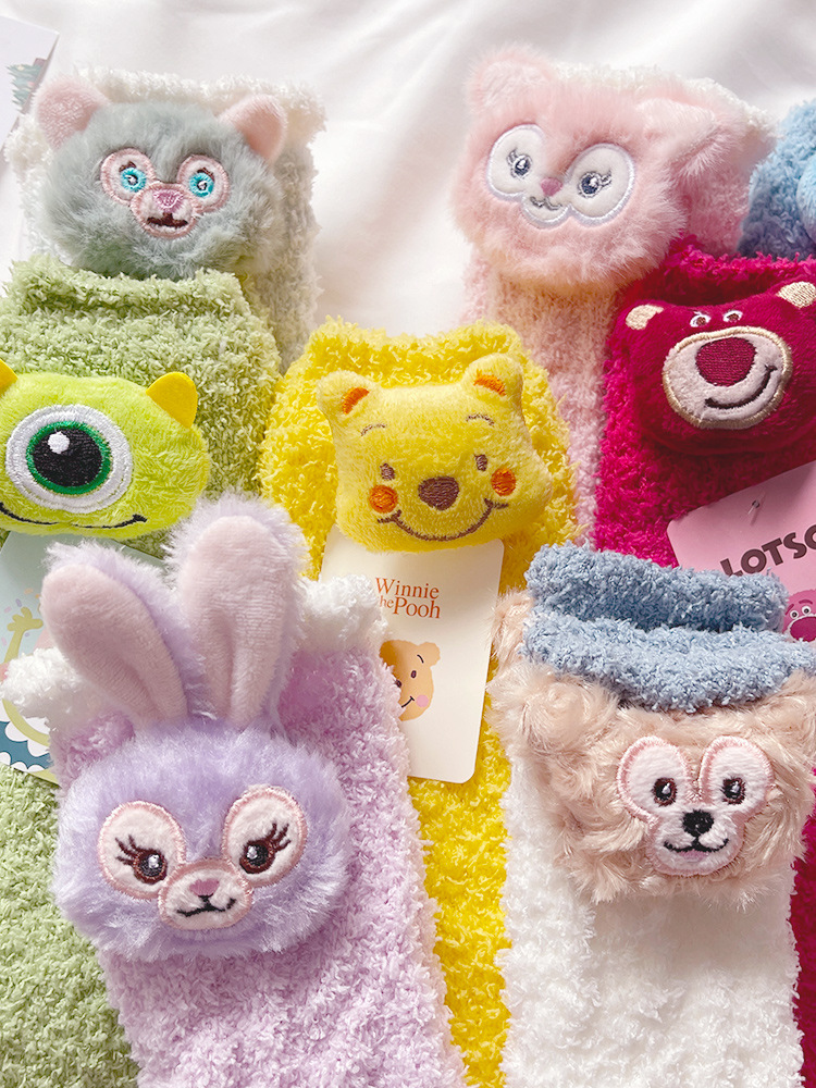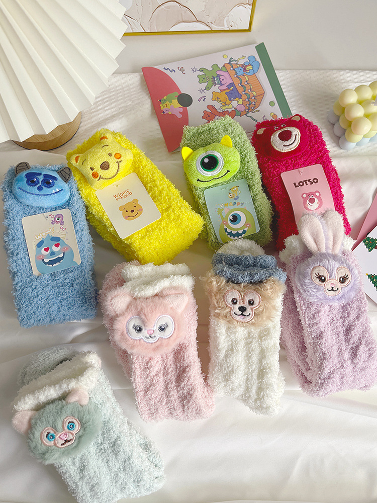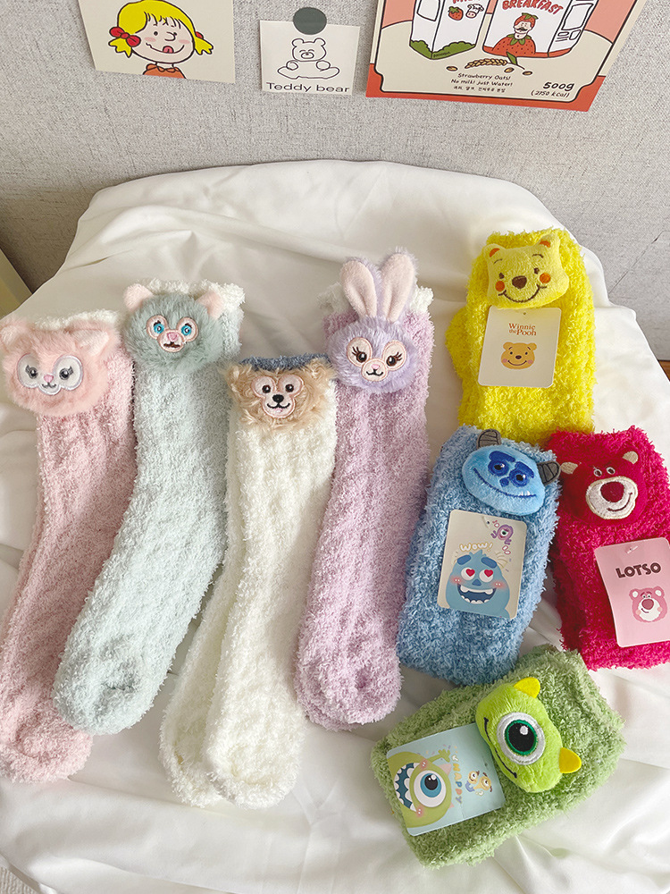 겨울철 여성용 플러시 양말, 두껍고 따뜻한 종아리 양말, 바닥 양말, 가정용 수면 양말, 산후 양말, 귀여운 산호 벨벳스토어 가기