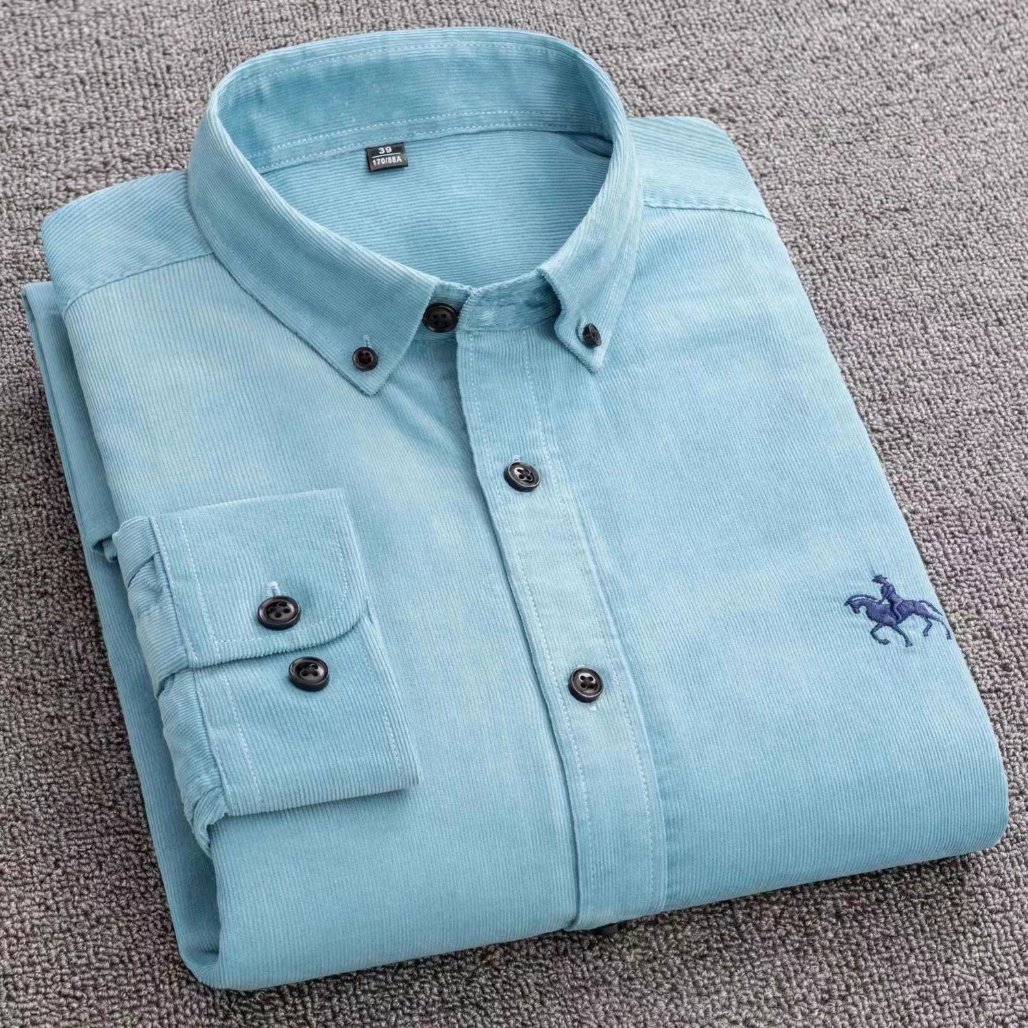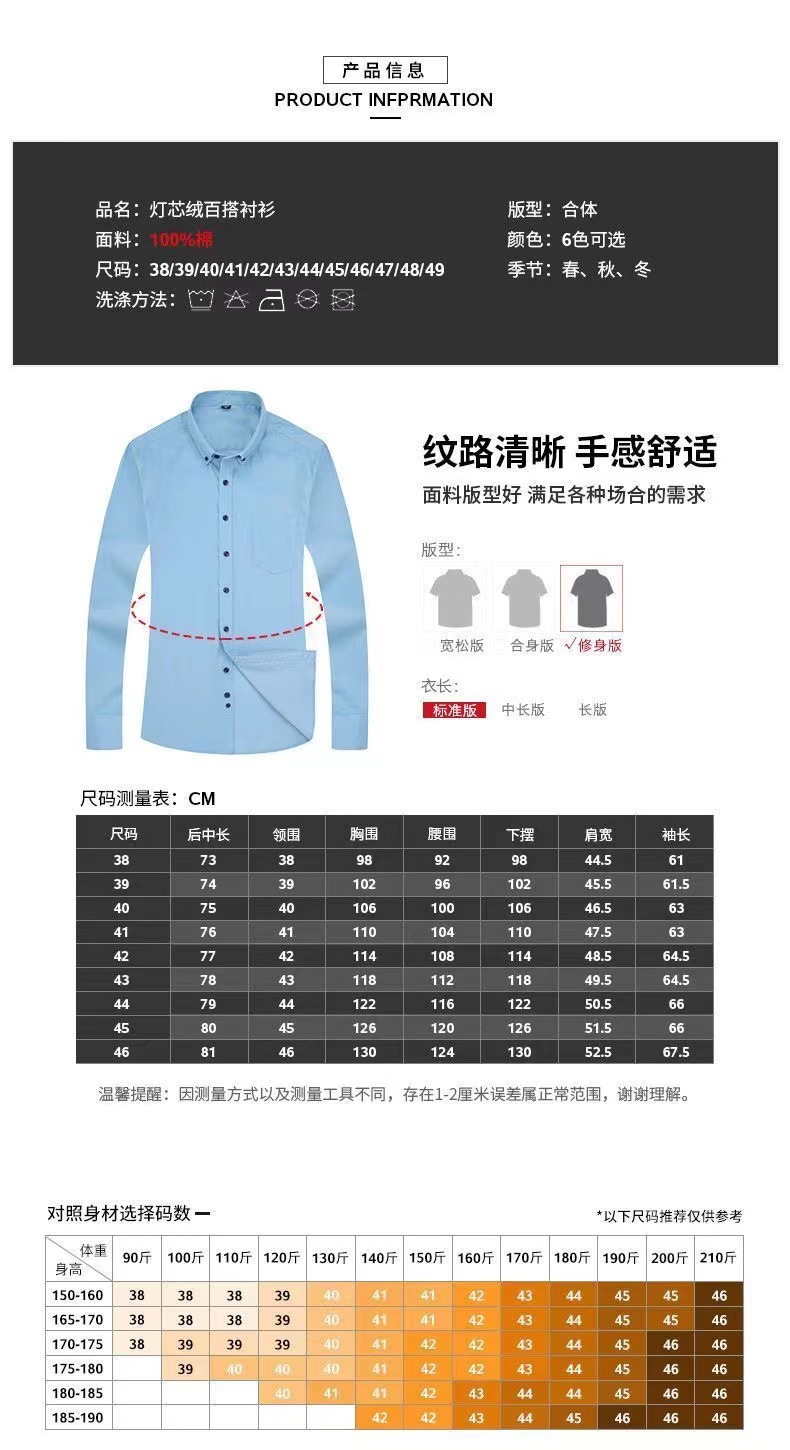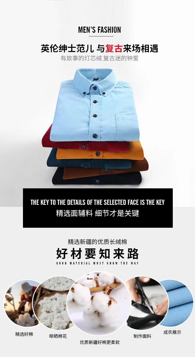 봄과 가을 새 남자 면 코듀로이 셔츠 긴팔 캐주얼 면 코듀로이 단색 셔츠 비즈니스 남성 의류스토어 가기