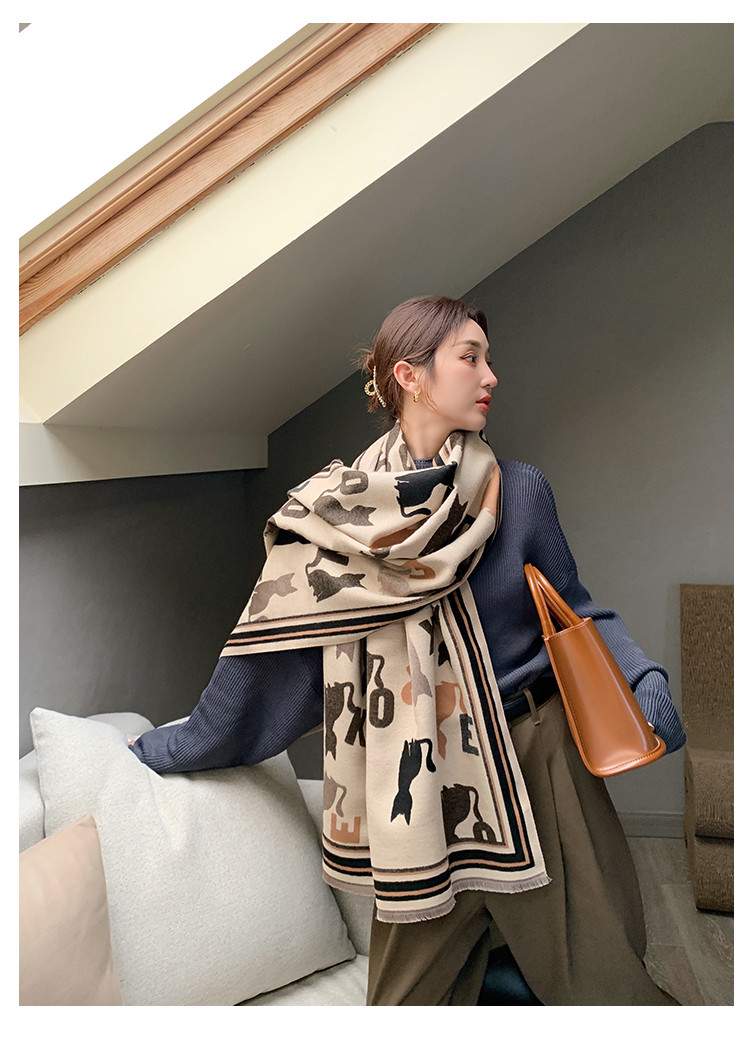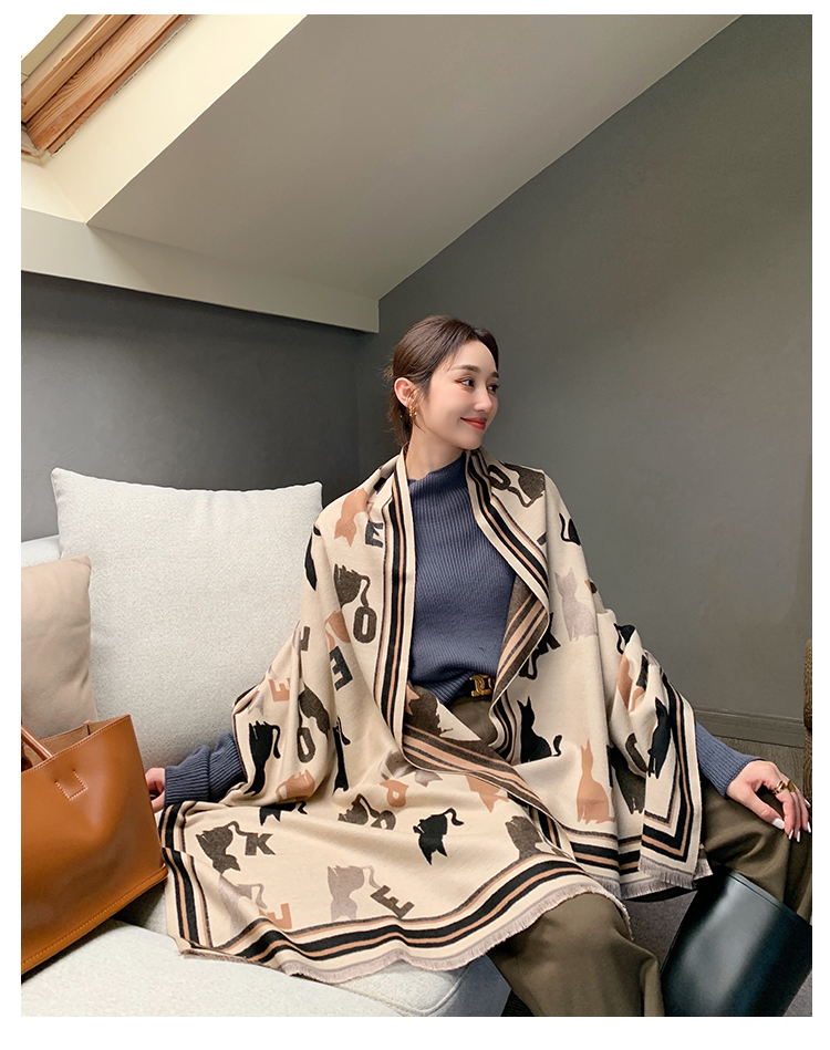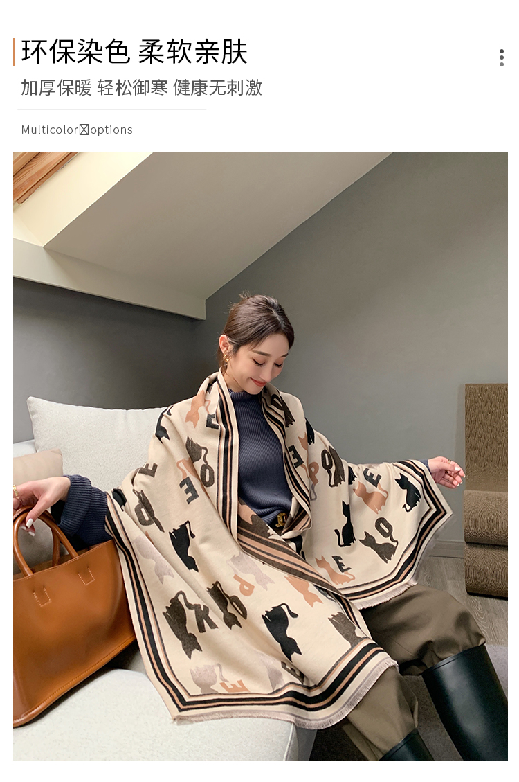 고급 두꺼운 컬러 고양이 스카프 여성용 겨울 한국식 올매치 롱 웜 캐시미어 넥 이중 사용 숄스토어 가기