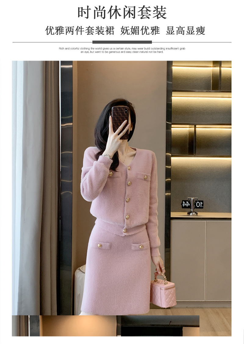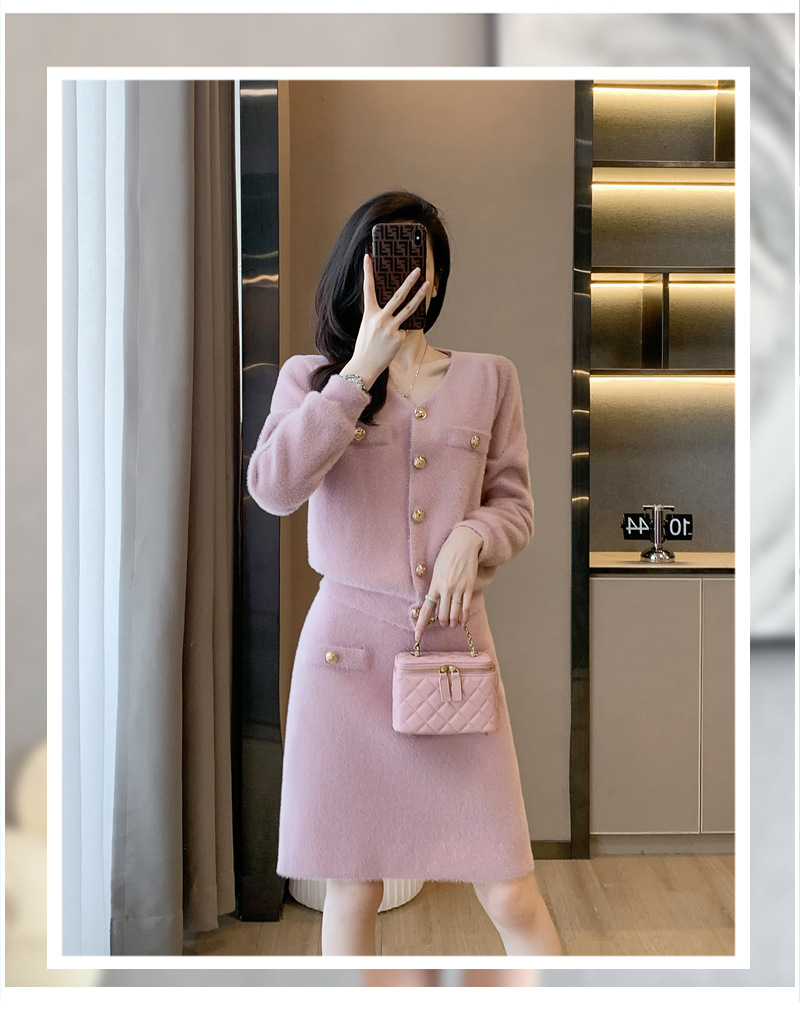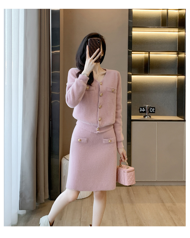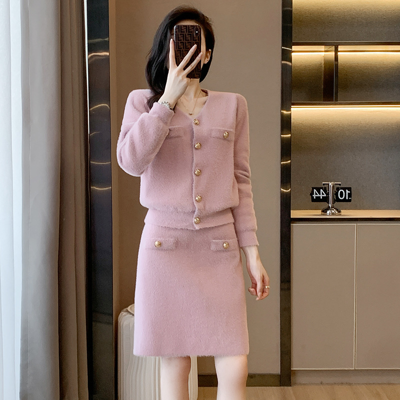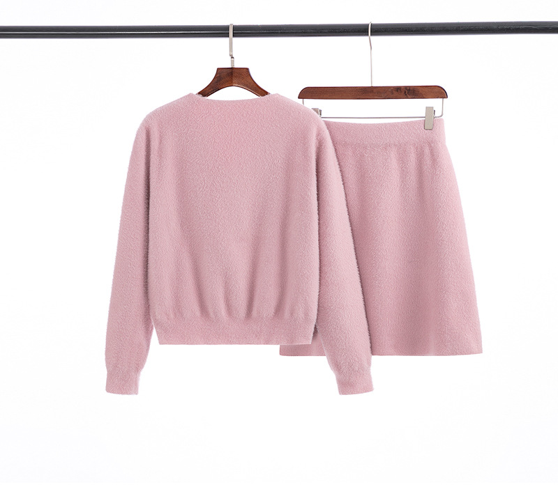 패션 캐주얼 정장 여성용 2025 가을 신상 명사 스타일 모조 밍크 털 니트 투피스 정장 스커트 여성용스토어 가기