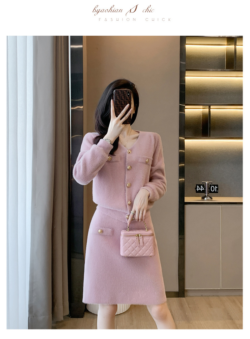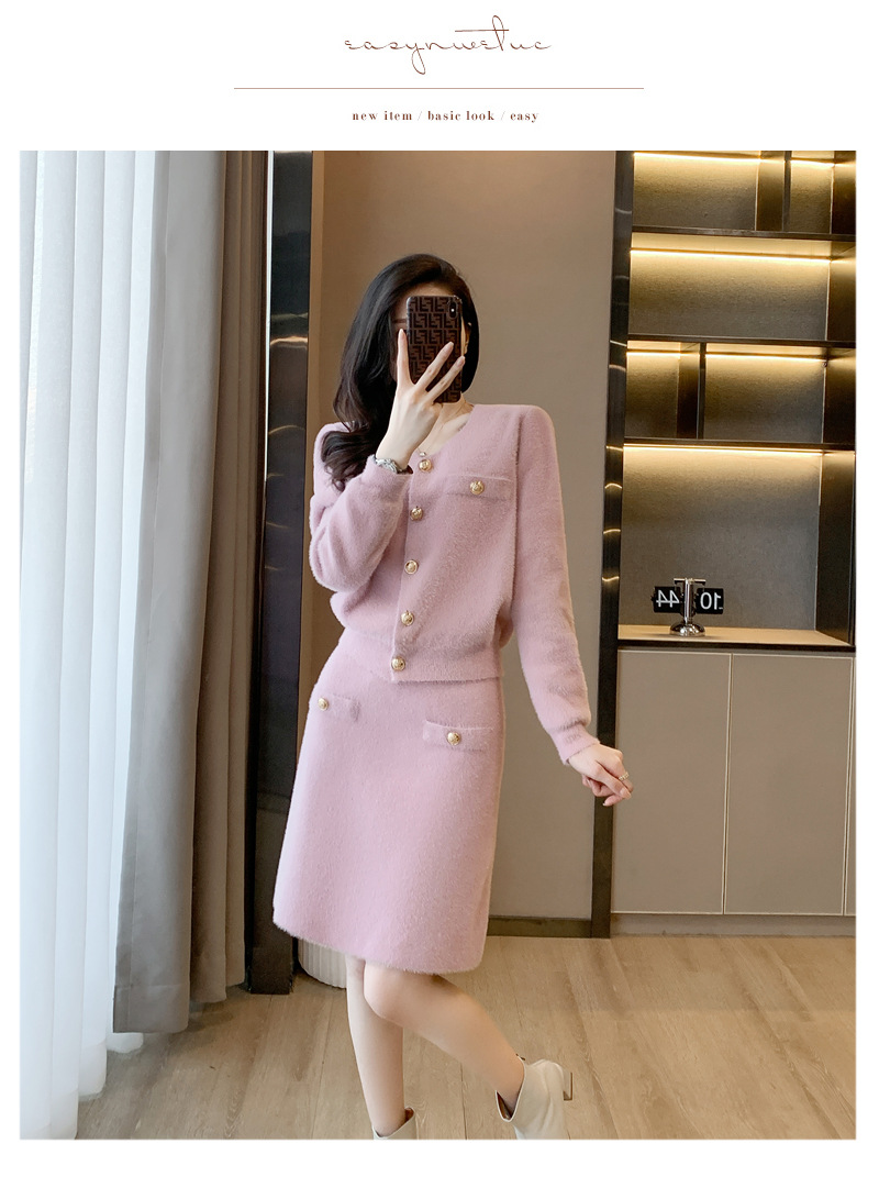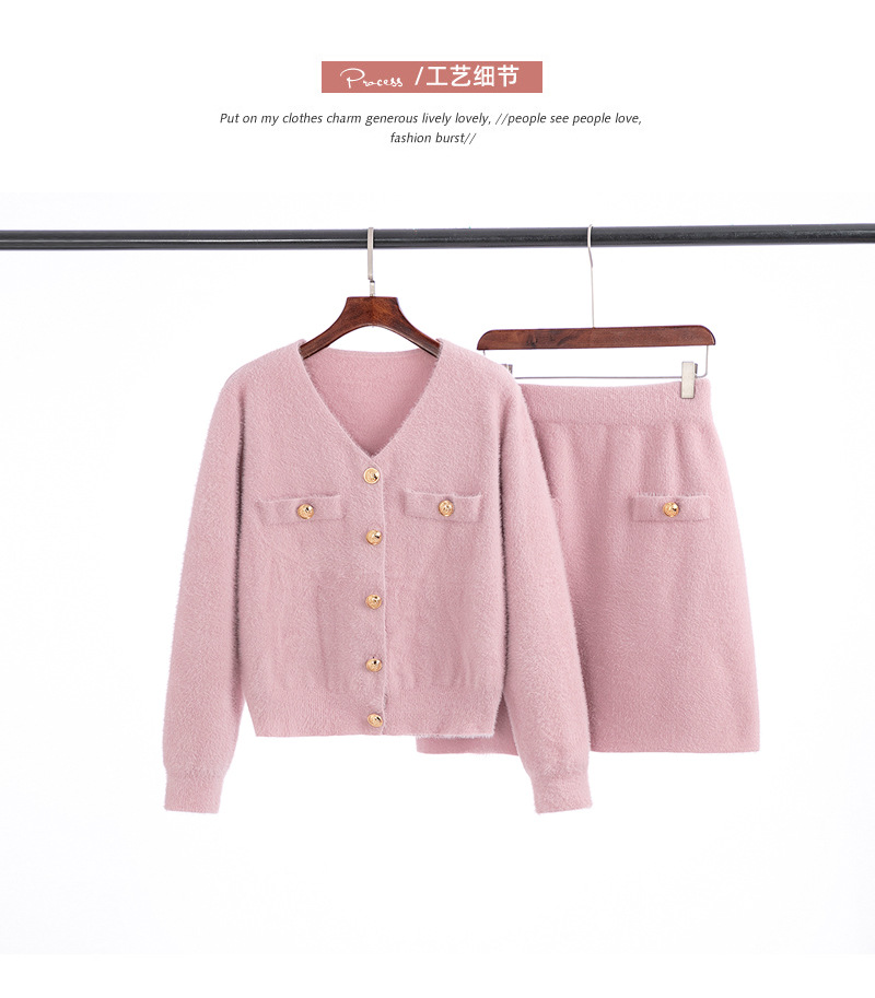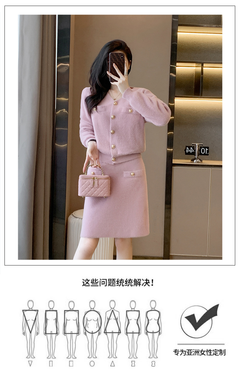 패션 캐주얼 정장 여성용 2025 가을 신상 명사 스타일 모조 밍크 털 니트 투피스 정장 스커트 여성용스토어 가기