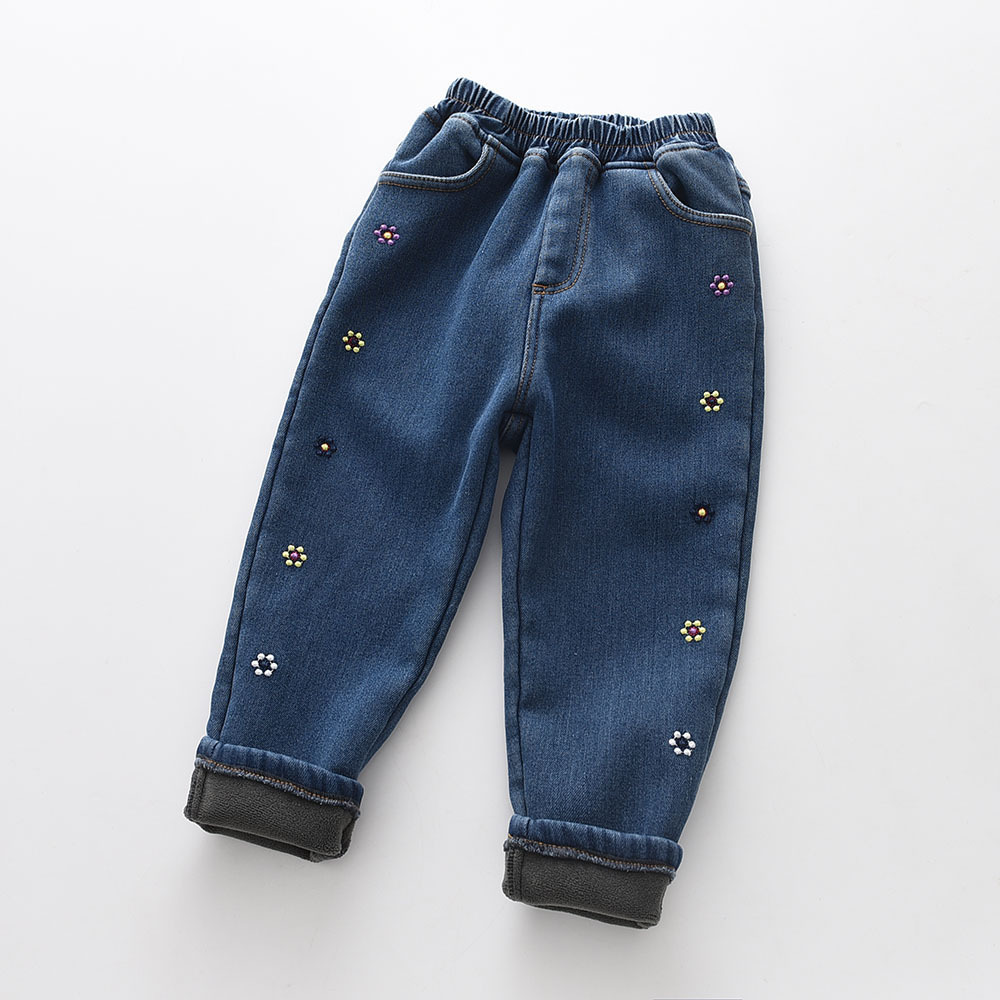 1031-05 2022 겨울 새로운 꽃 자수 소녀 탄성 허리 기모 데님 바지스토어 가기
