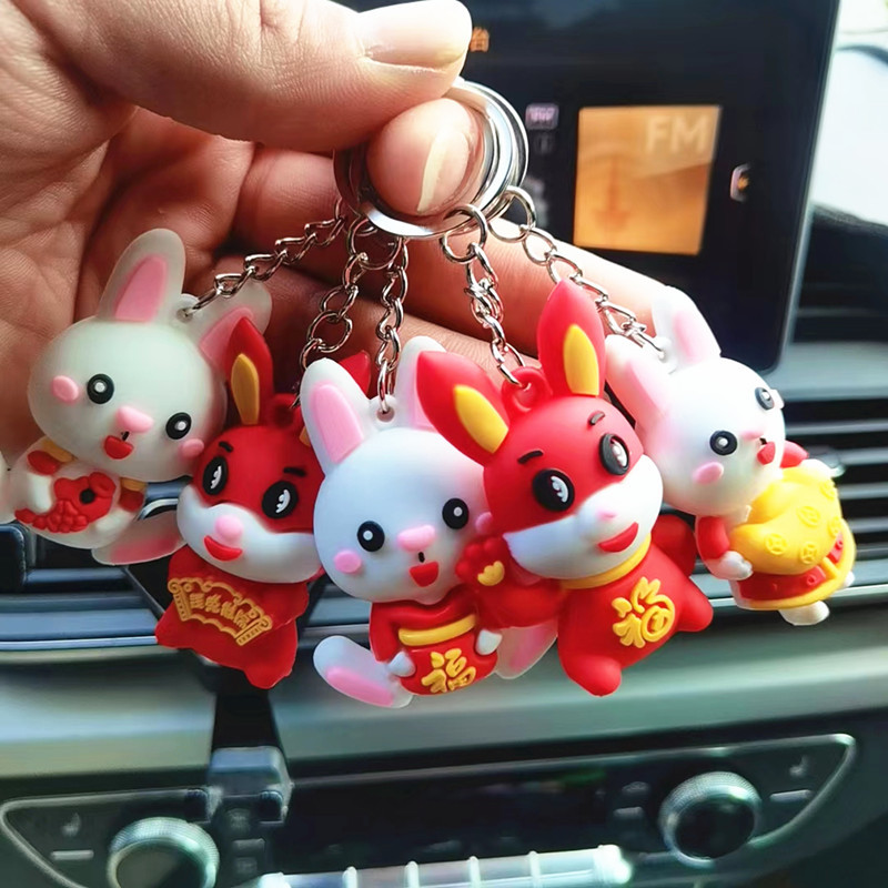 토끼 열쇠 고리의 2023 년 당나라 세트 토끼 펜던트 PVC 마스코트 축제 인형 장식품 DIY 작은 선물
