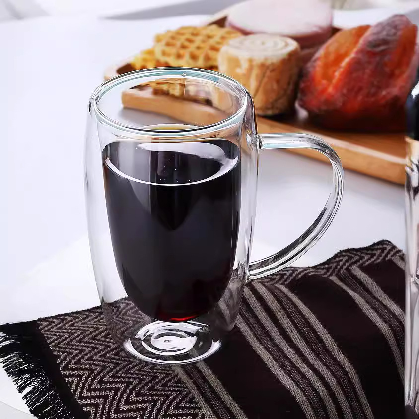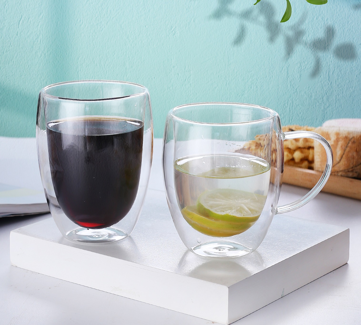 2 층 유리 고 붕규산 내열성 가정용 주스 우유 커피 컵 둥근 달걀 모양의 투명 단열 차 컵스토어 가기