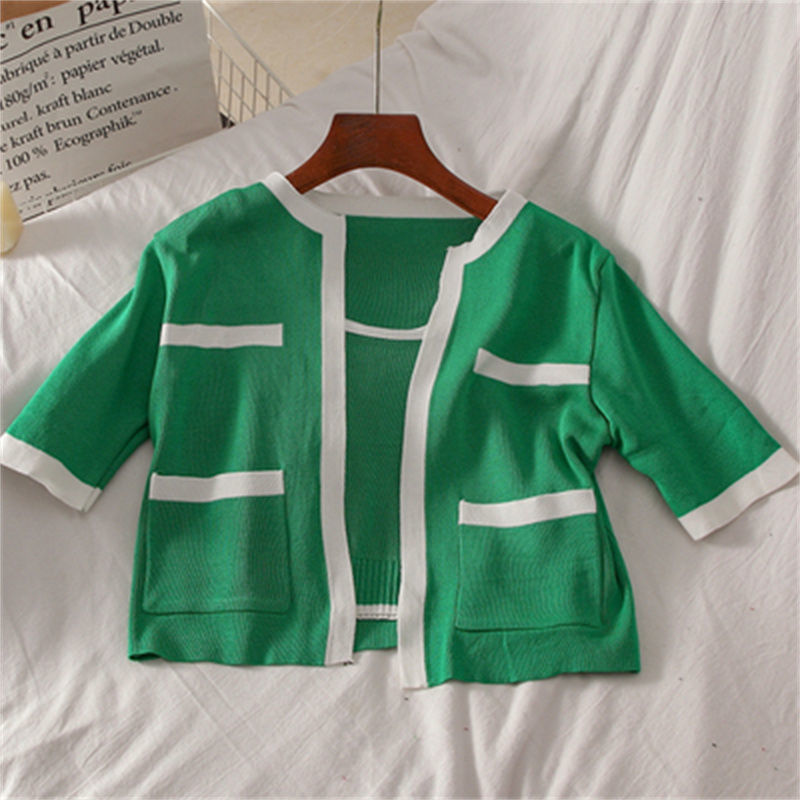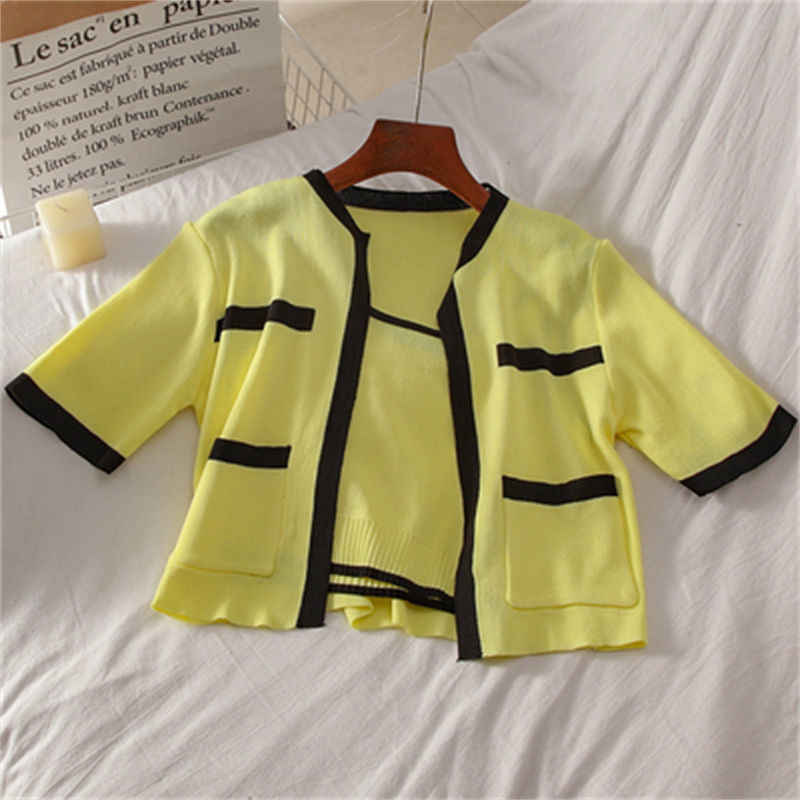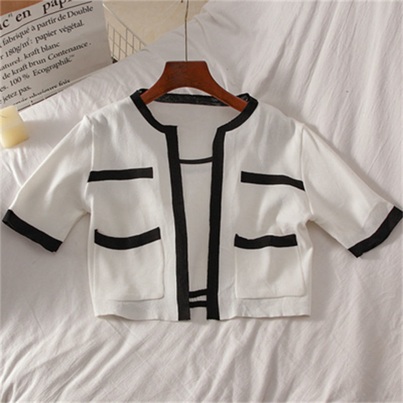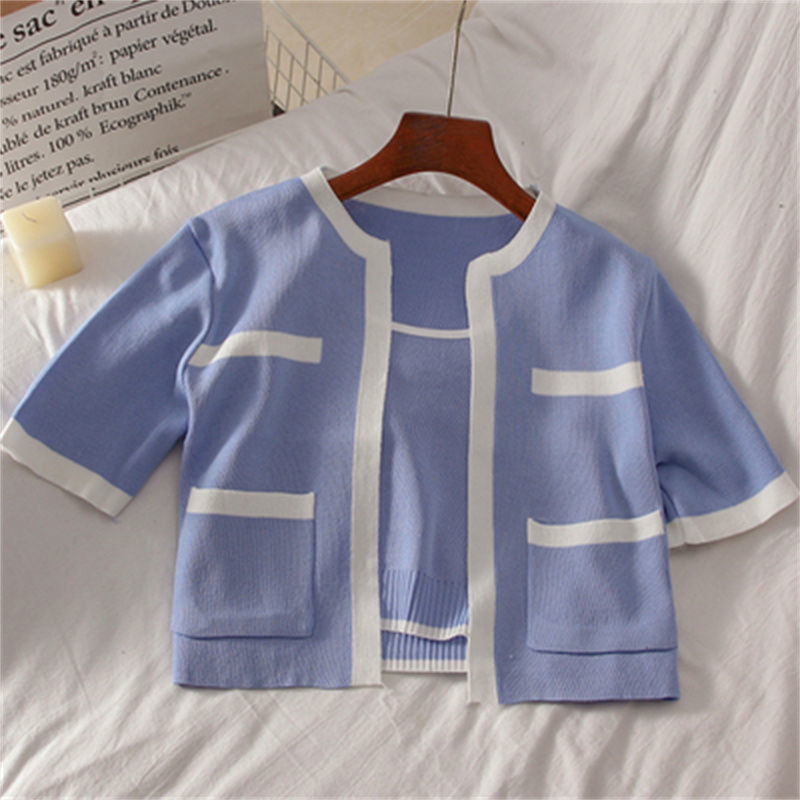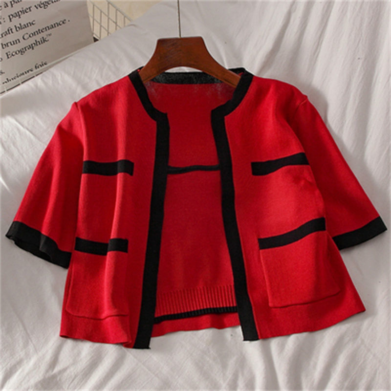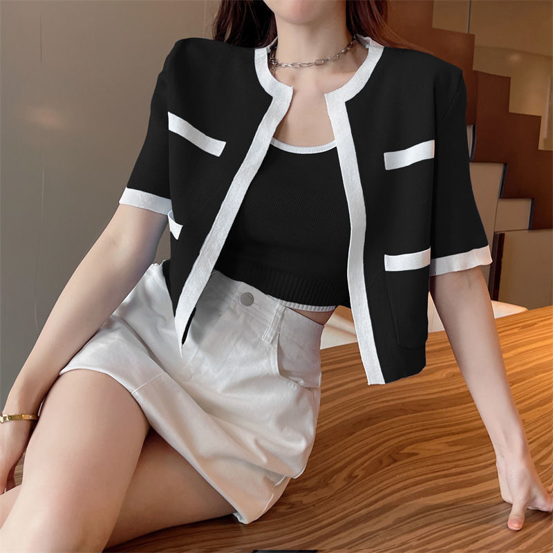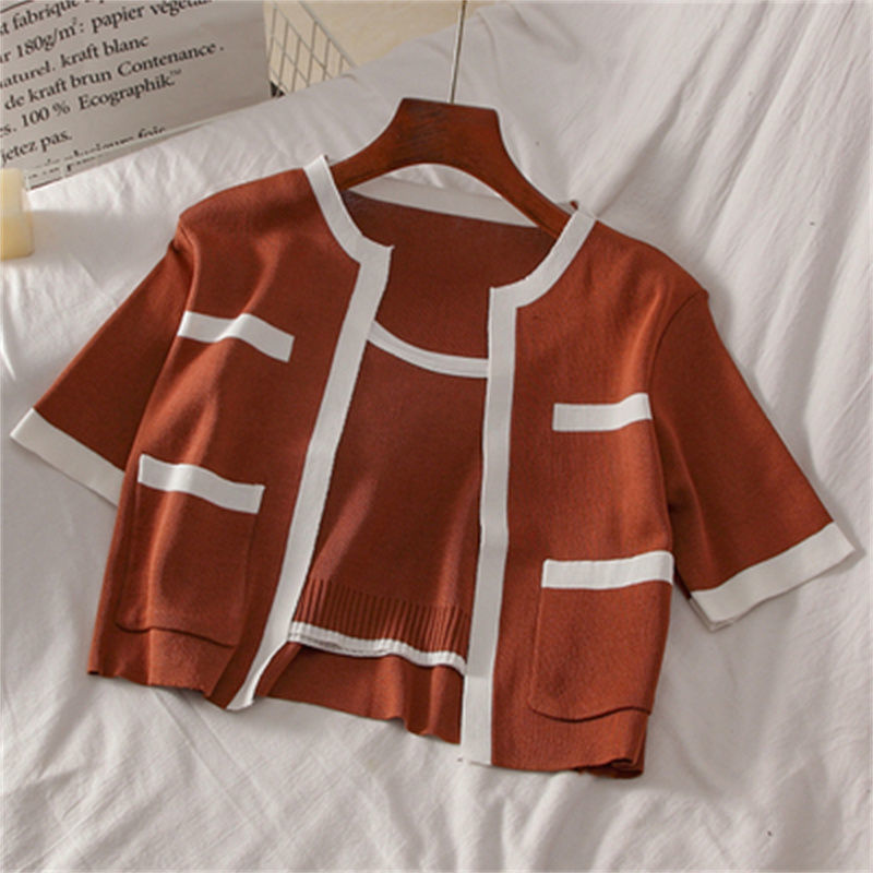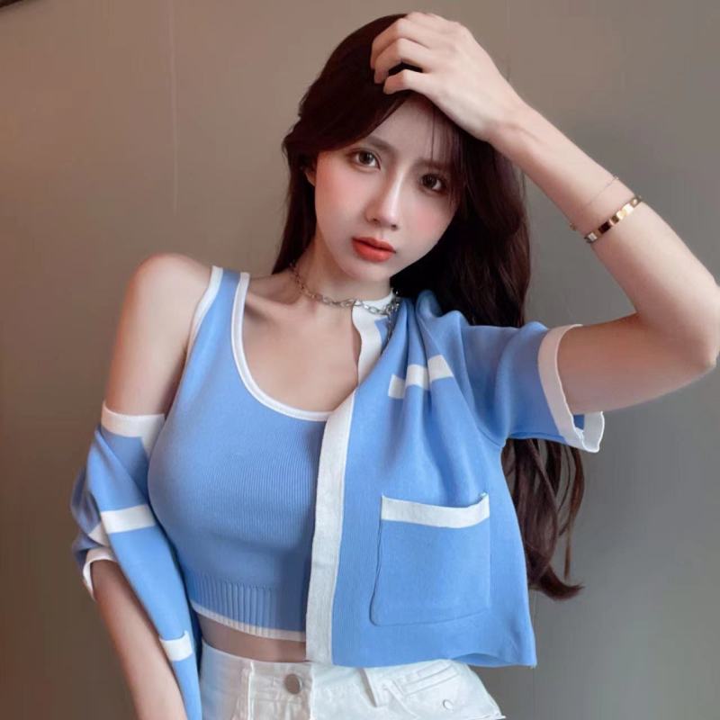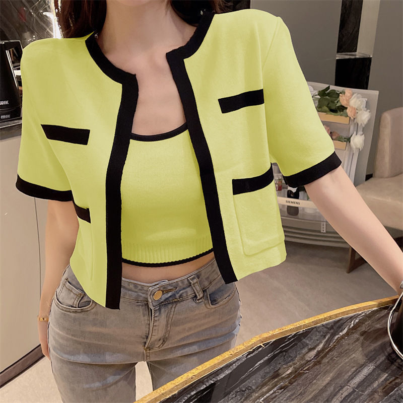 Xiaoxiang 스타일 니트웨어 조끼 투피스 세트 2023 봄과 가을 한국 탑 여성 슬리밍 반팔 조끼 가디건 세트