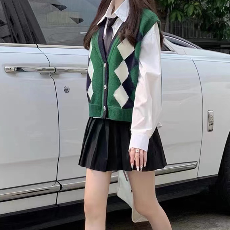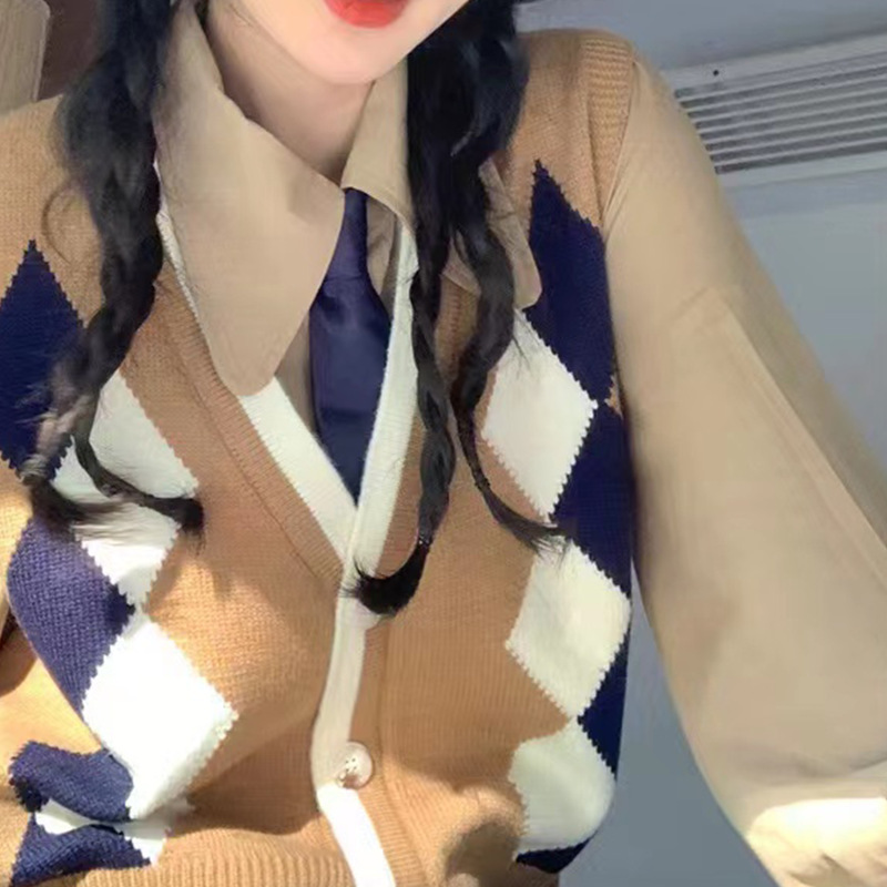 가을 새로운 느슨한 슬림 다이아몬드 조끼 한국식 모든 매치 패션 스웨터 트렌디 아우터 스웨터