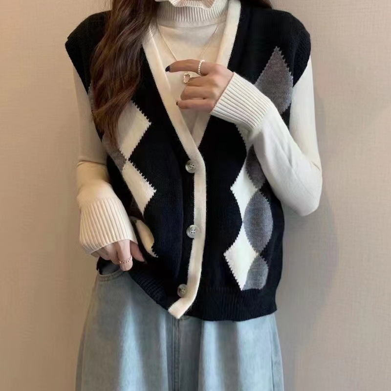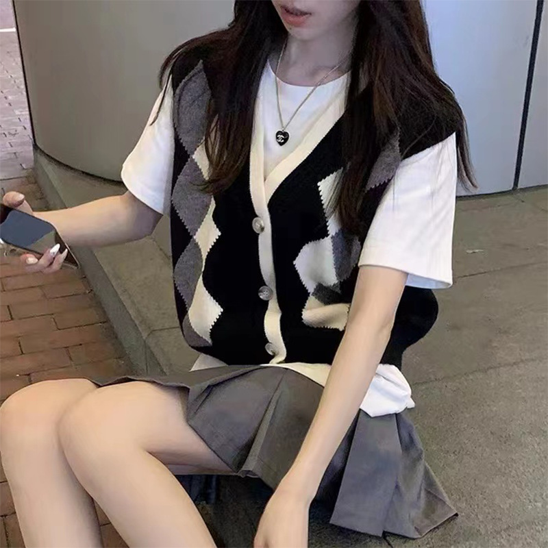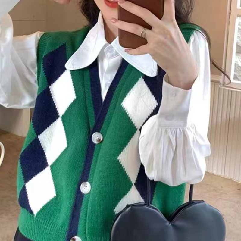 가을 새로운 느슨한 슬림 다이아몬드 조끼 한국식 모든 매치 패션 스웨터 트렌디 아우터 스웨터스토어 가기