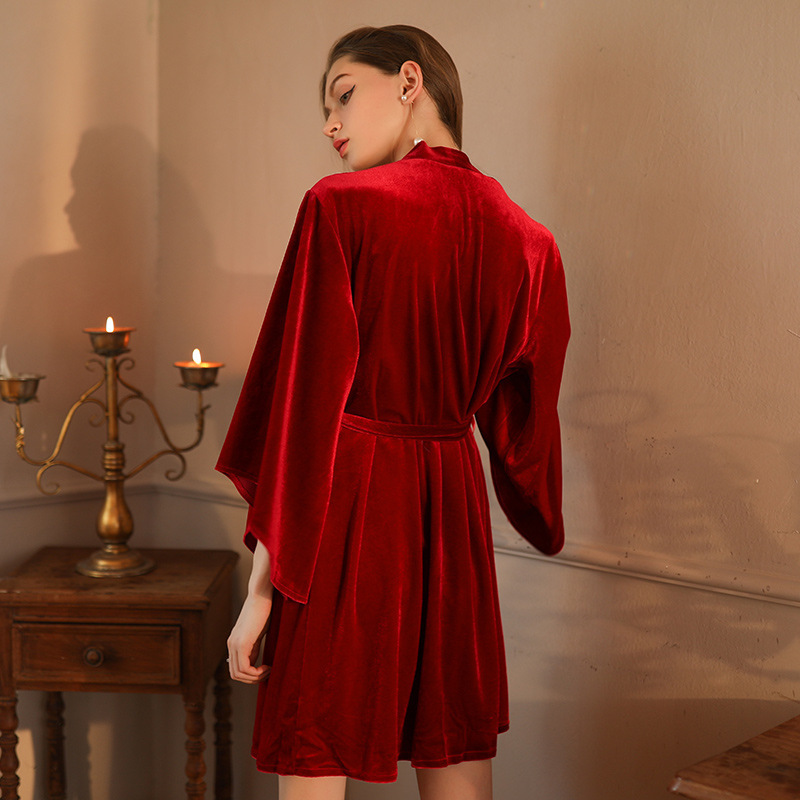섹시한 벨벳 잠옷 여러 가지 빛깔의 슬링 잠옷 목욕 가운 세트 순수한 욕망 관점 낮은 가슴 깊은 V 섹시한 잠옷 도매
